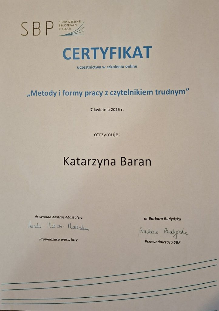 mgr Katarzyna Baran – kustosz radłowskiej książnicy