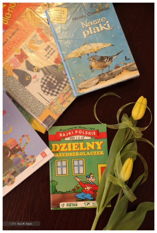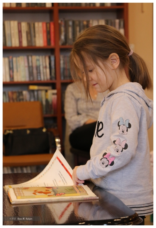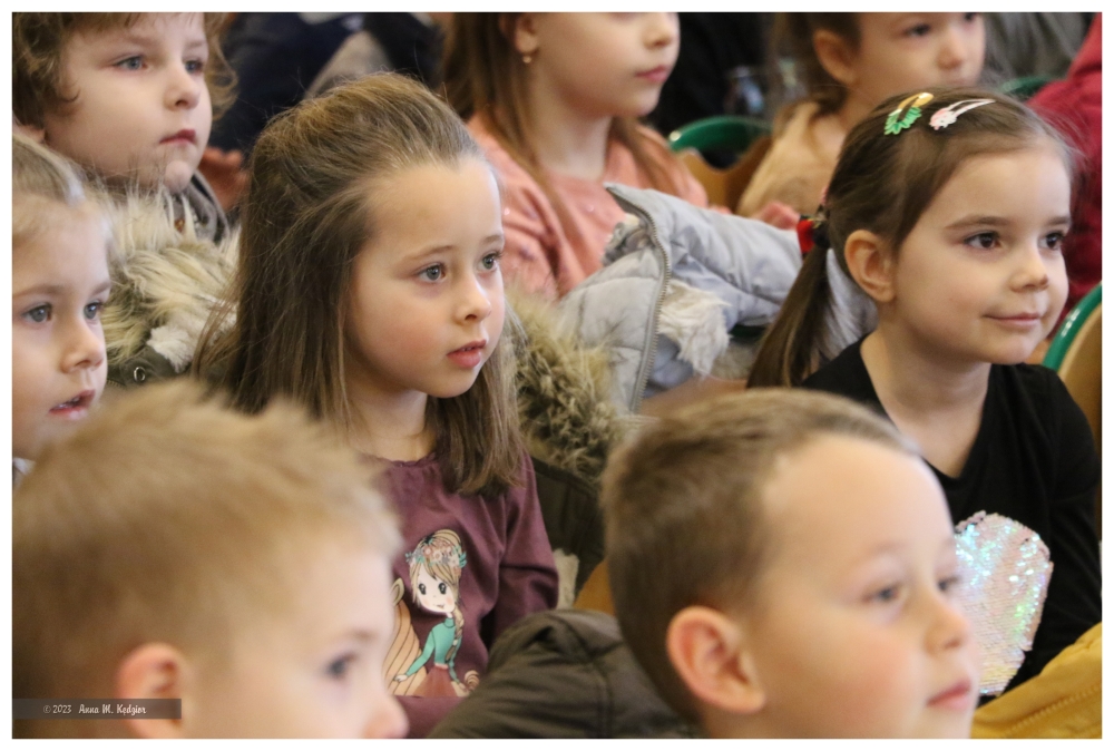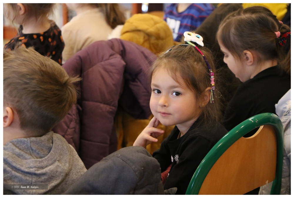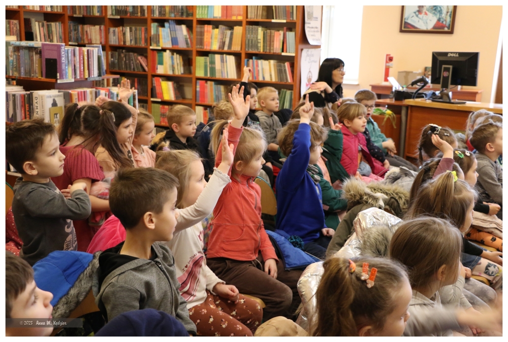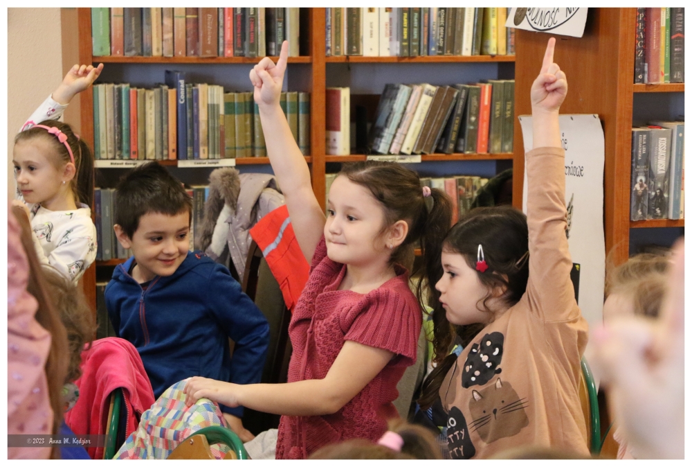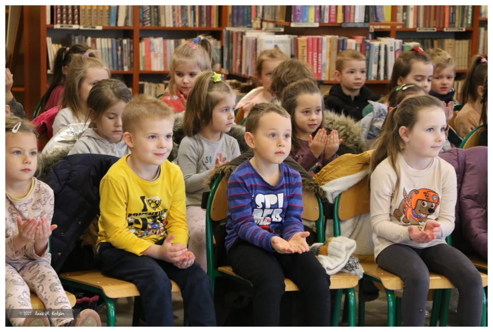 Piosenka „Mądra rzeka” wprowadziła dzieci w świat książek. Dzieci z radością włączyły się w śpiew i zabawę, następnie wysłuchały opowiadania z cyklu przygód „ O wróbelku Elemelku”, z którego dowiedziały się dlaczego Elemelek powinien uczyć się literek oraz krótkiej opowieści „Dzielny przedszkolaczek”.
