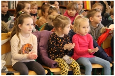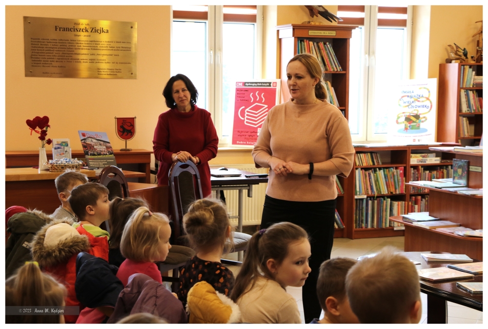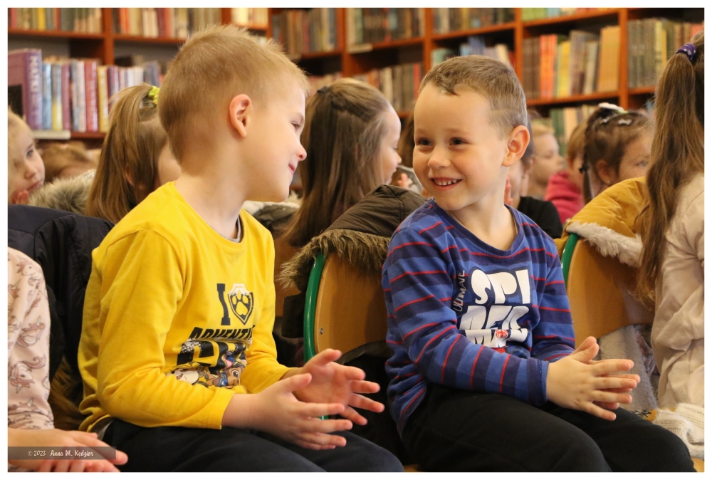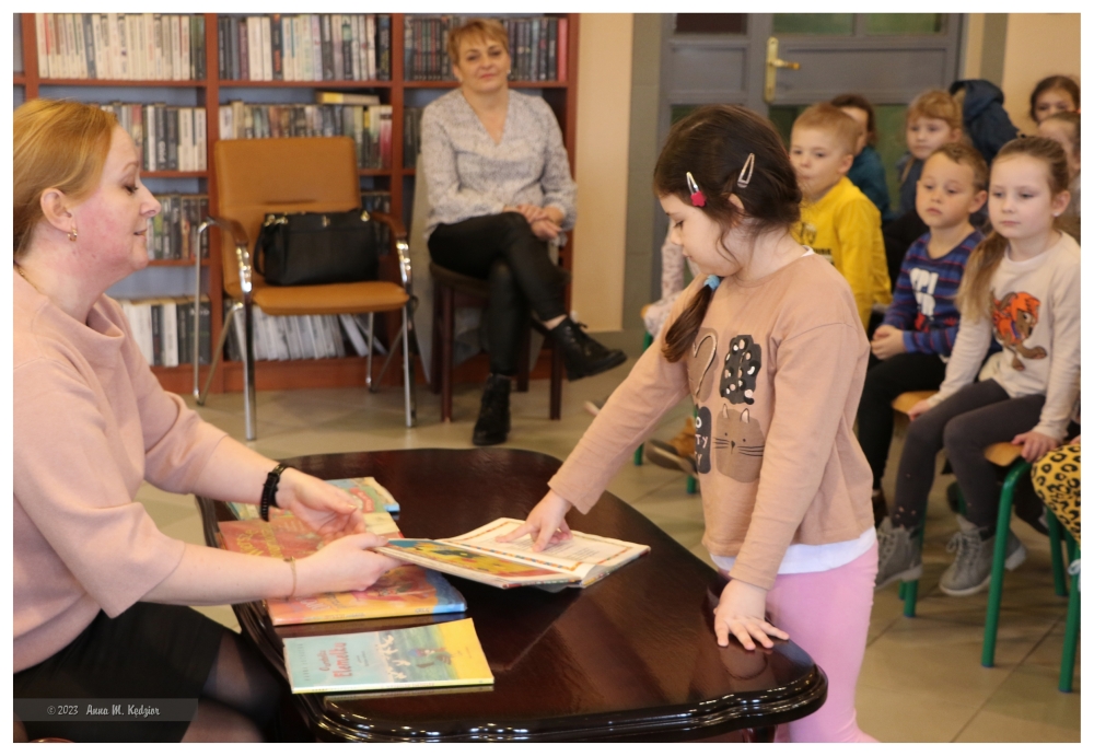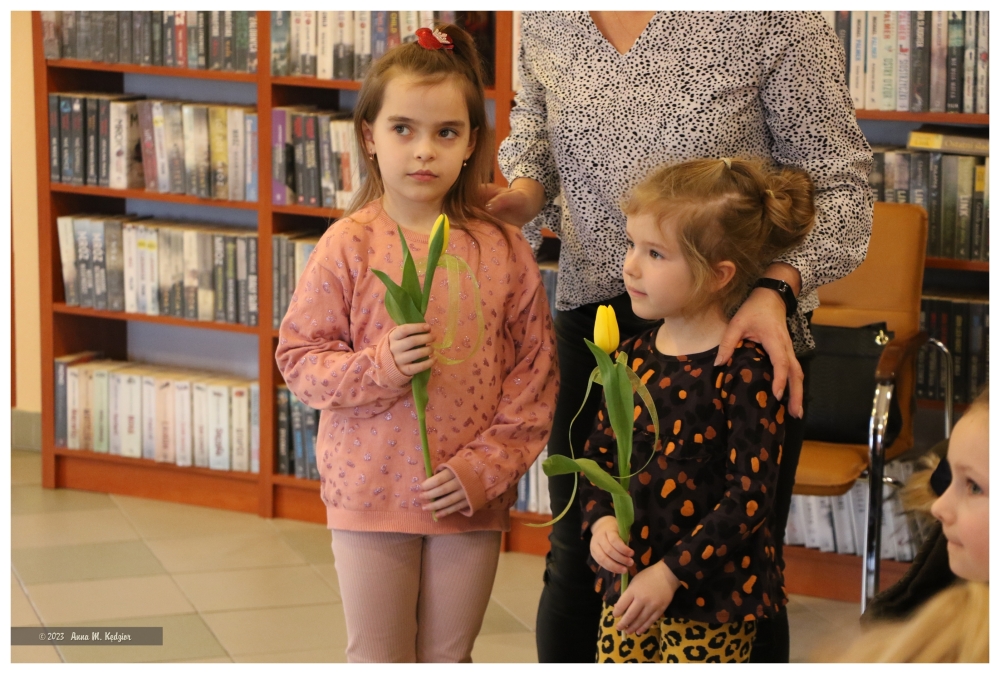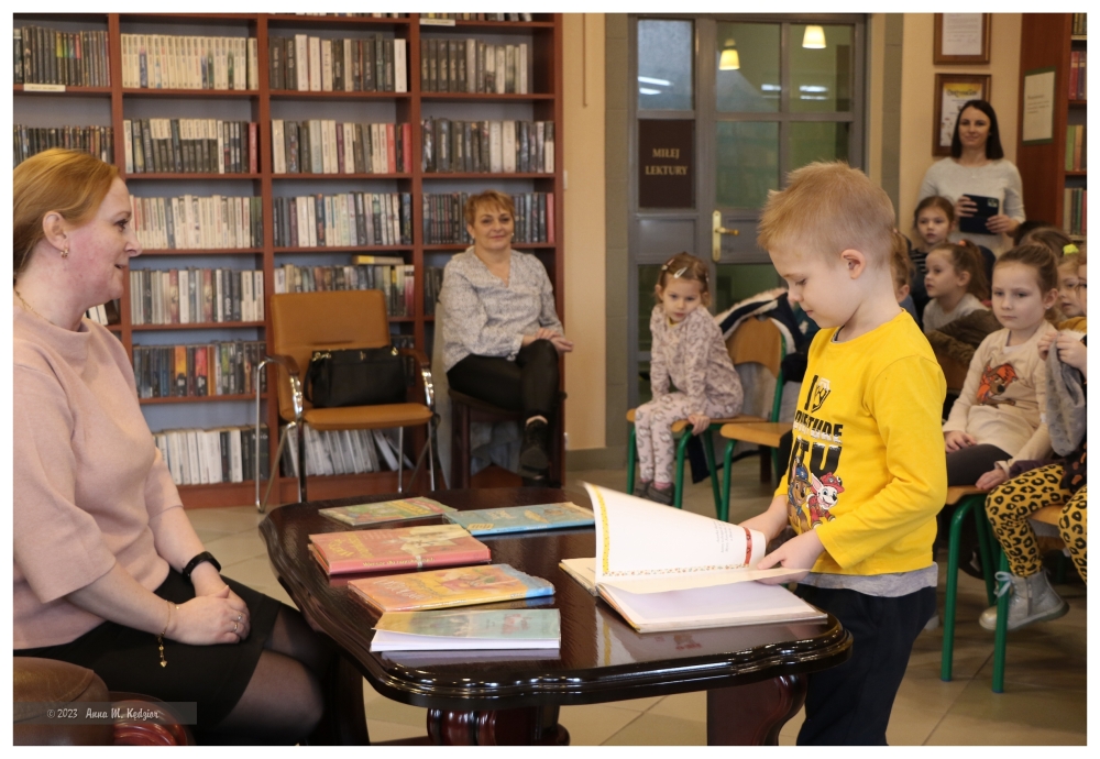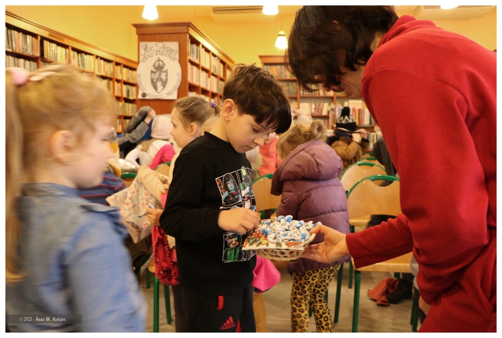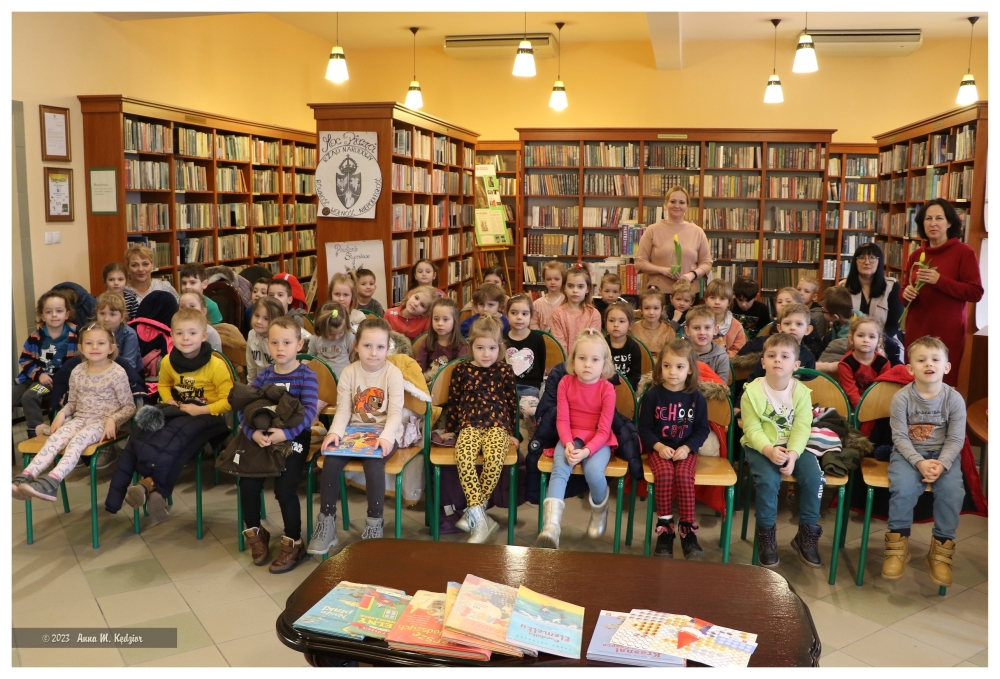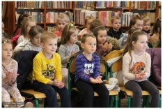 Panie bibliotekarki przypomniały o trwającej akcji: Mała książka- wielki człowiek, pod patronatem Instytutu Książki, dzięki której można otrzymać darmową wyprawkę czytelniczą. Większość z przybyłych zna bibliotekę i wraz z rodzicami często ją odwiedza, pozostali obiecali zapisać się jak najszybciej.