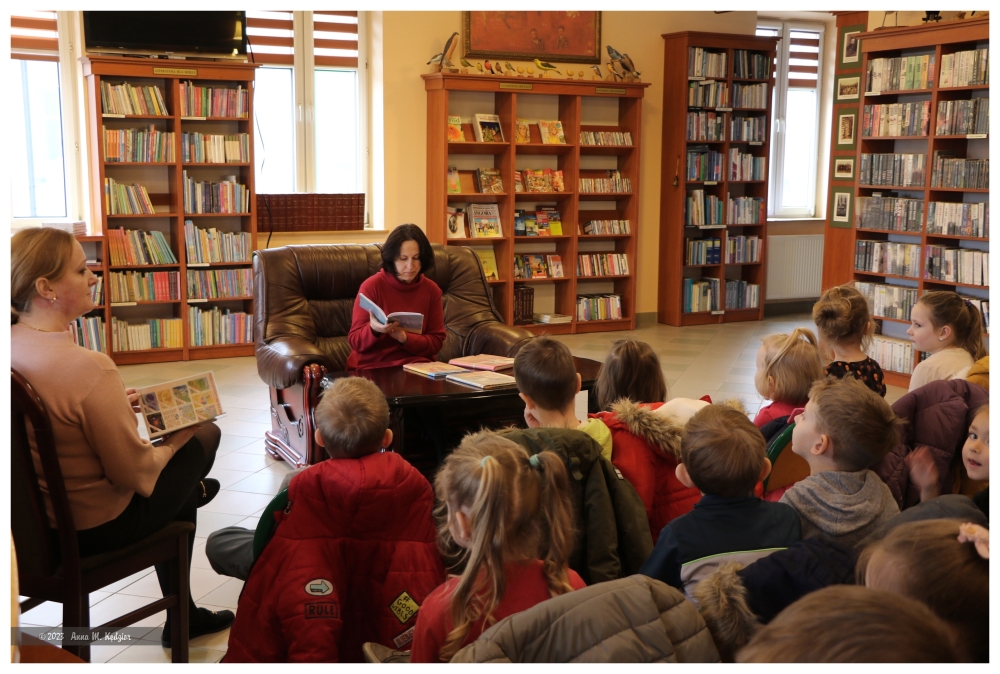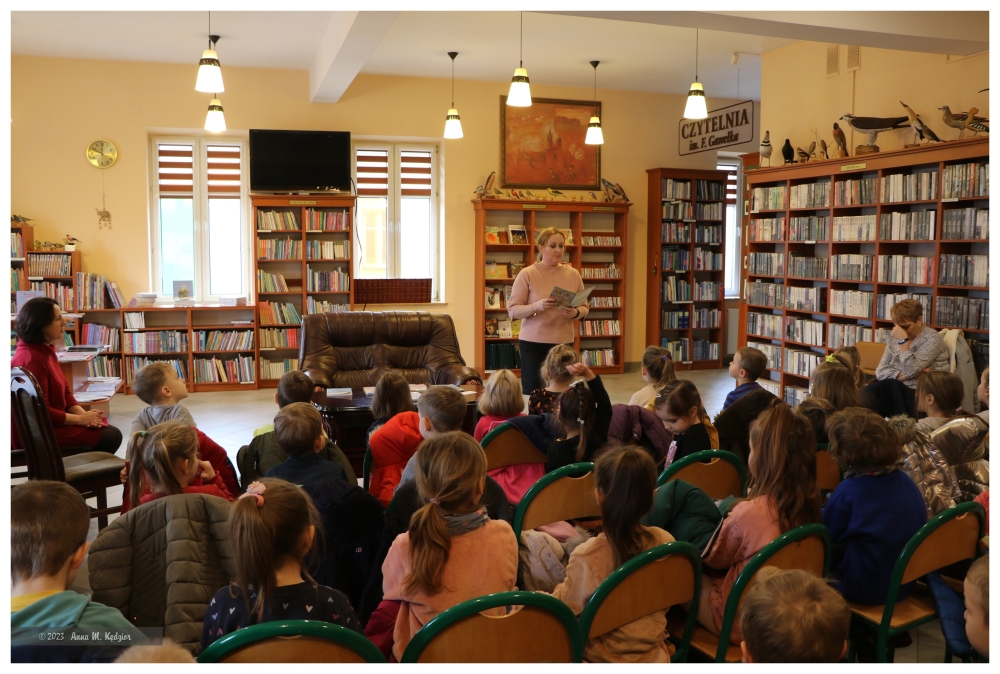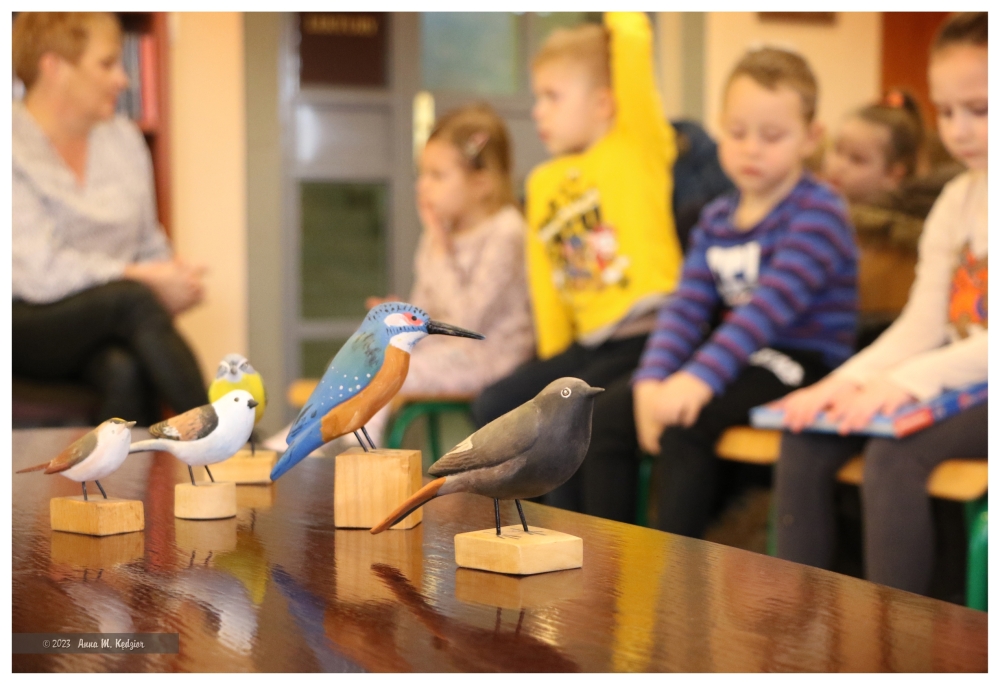 Pięknie wyjaśniły jak należy obchodzić się z książkami i bez problemu rozwiązały podane zagadki. Zapoznały się również z kolekcją ptaków autorstwa pana Andrzeja Kwapniewskiego, na stałe mieszczącej się w naszej książnicy.