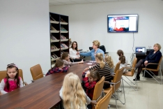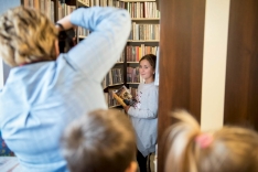 Gość spotkania Tatiana Szwiec nawiązała świetny kontakt z dziećmi, przekazując ciekawe informacje nie tylko o fotografii, ale przede wszystkim o rozwijaniu swoich pasji. Podczas spotkania dzieci mogły obejrzeć profesjonalny sprzęt fotograficzny oraz podziwiać zdjęcia autorstwa naszego gościa. Finałem spotkania była sesja fotograficzna w bibliotece. Dzieci chętnie pozowały do zdjęć na tle różnokolorowego księgozbioru.
