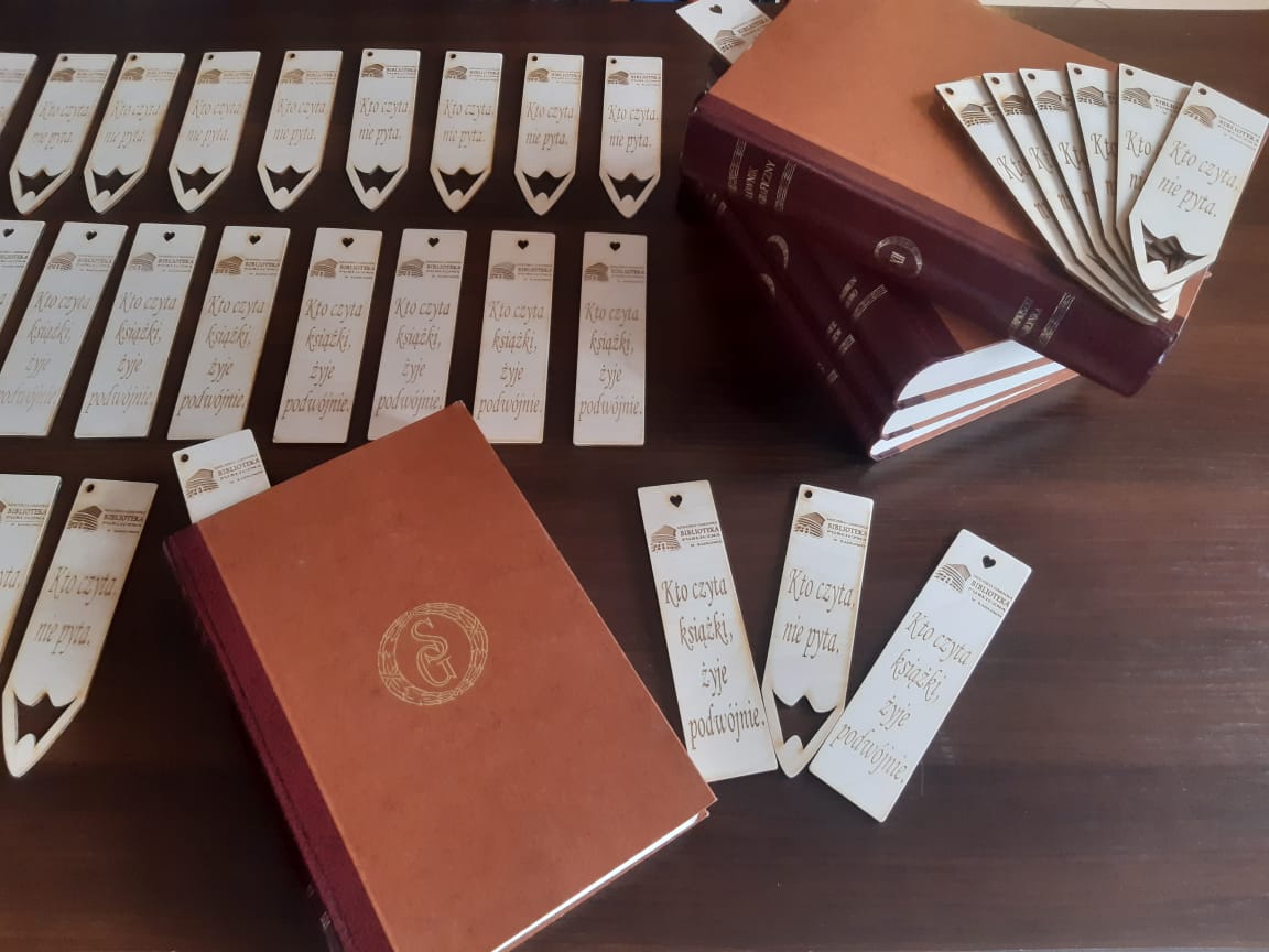 Są książki, od których nie sposób się oderwać. Kiedy jednak trzeba już przerwać lekturę, warto zaznaczyć sobie miejsce, w którym skończyliśmy czytanie. Posłużą do tego oryginalne, drewniane z wymownym mottem, z logo naszej biblioteki zakładki, którymi będziemy obdarowywać naszych czytelników. Mamy nadzieję, że staną się one nieodłącznymi towarzyszkami długich godzin spędzanych z książkami.