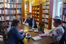 Kameralne było czwartkowe spotkanie Saloniku literackiego i Dyskusyjnego Klubu Książki. Grono niewielkie lecz doborowe z zainteresowaniem wysłuchało recenzji książki Beaty Biały ” Osiecka. Tego o mnie nie wiecie” przedstawionej przez Mateusza Borowca. Jak powiedział Mateusz książka ukazuje realistyczny, odbrązowiony obraz Agnieszki Osieckiej, jej życia osobistego, kariery i demonów z którymi się borykała. Wywiązała się ciekawa dyskusja na temat życia gwiazd i zwykłych ludzi.