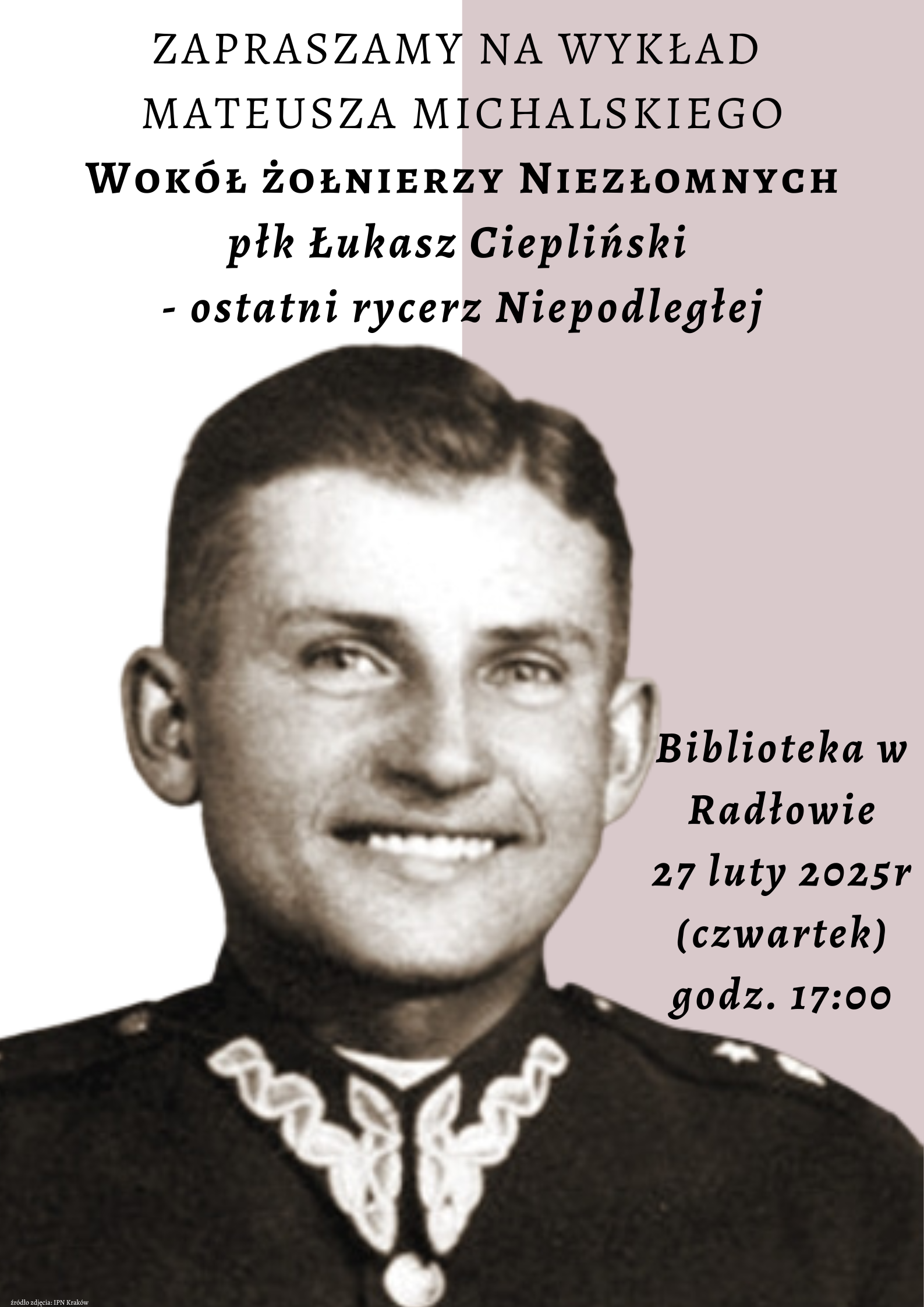 Serdecznie zapraszamy na kolejne spotkanie z panem Mateuszem Michalskim, który tym razem przybliży nam sylwetkę bohatera II Wojny Światowej – płk Łukasza Cieplińskiego.