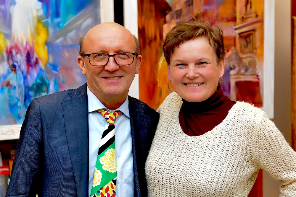 Na fot. Teresa Kras z wszechstronnym aktorem Arturem Barcisiem, po autorskim spotkaniu w Radłowie.