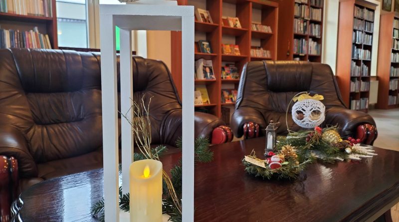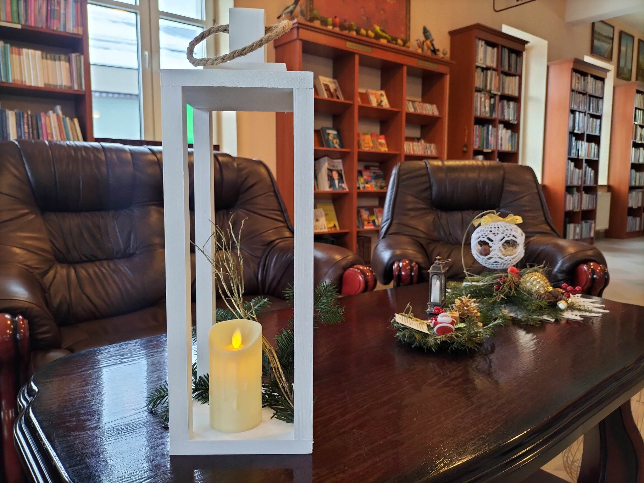 Jarosławowi Flikowi- pracownikowi Środowiskowego Domu Samopomocy w Siedlcu za wykonanie świątecznych dekoracji: lampionu oraz skrzynki zdobiących naszą bibliotekę.