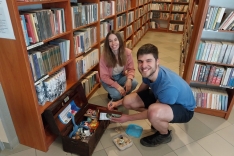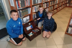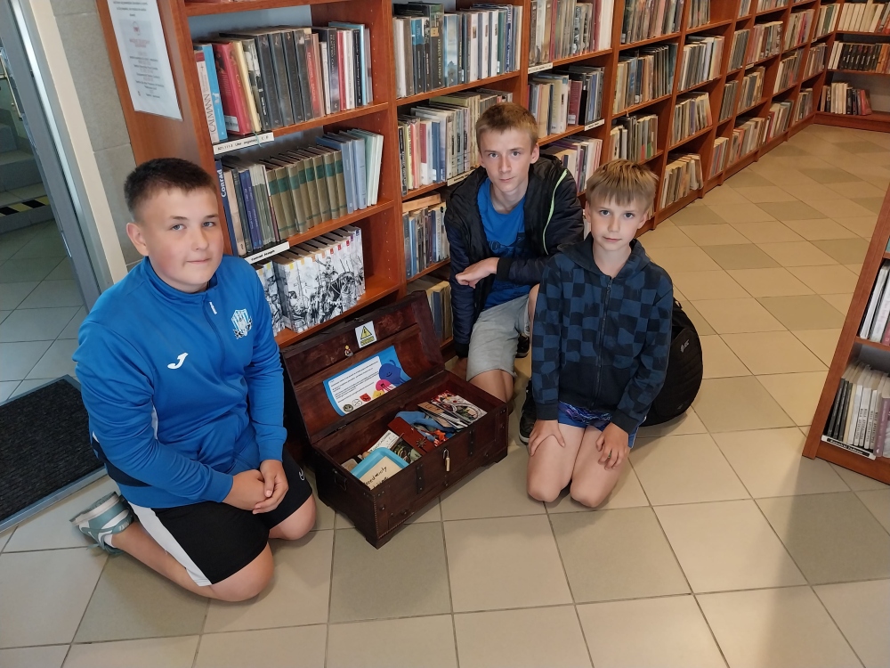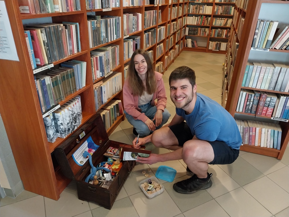 Piątek 13 czerwca okazał się również szczęśliwy dla Pani Kingi i Pana Mateusza. Gościom z Chorzowa, którzy przyjechali do Radłowa, by wziąć udział w akcji „Sprzątania Świata”, również udało się odnaleźć biblioteczną skrytkę, która okazała się Ich tysięcznym znaleziskiem. Skrzynia znajdująca się w naszej bibliotece zrobiła na Nich wielkie wrażenie. „Skrzynia jest przepiękna, zadbana. Dla takich skrytek warto szukać”- z radością podsumowała pani Kinga. Gościom z Chorzowa towarzyszył nie kto inny, jak sam pan Arkadiusz Tomaszek, dzięki któremu zaczęli swoją keszoprzygodę.