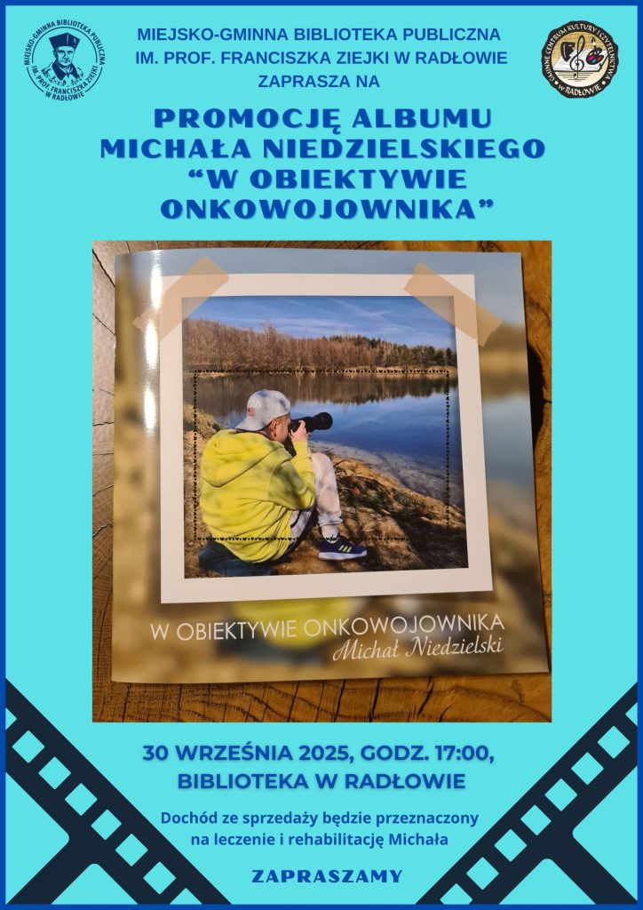 Miejsko-Gminna Biblioteka Publiczna im. prof. Franciszka Ziejki w Radłowie zaprasza na promocję albumu Michała Niedzielskiego „W OBIEKTYWIE ONKOWOJOWNIKA”