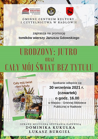Aktualności Promocja tomików poezji autorstwa Janusza Gdowskiego 24 września 2021 Katarzyna Baran Serdecznie zapraszamy na promocję tomików wierszy autorstwa Janusza Gdowskiego.