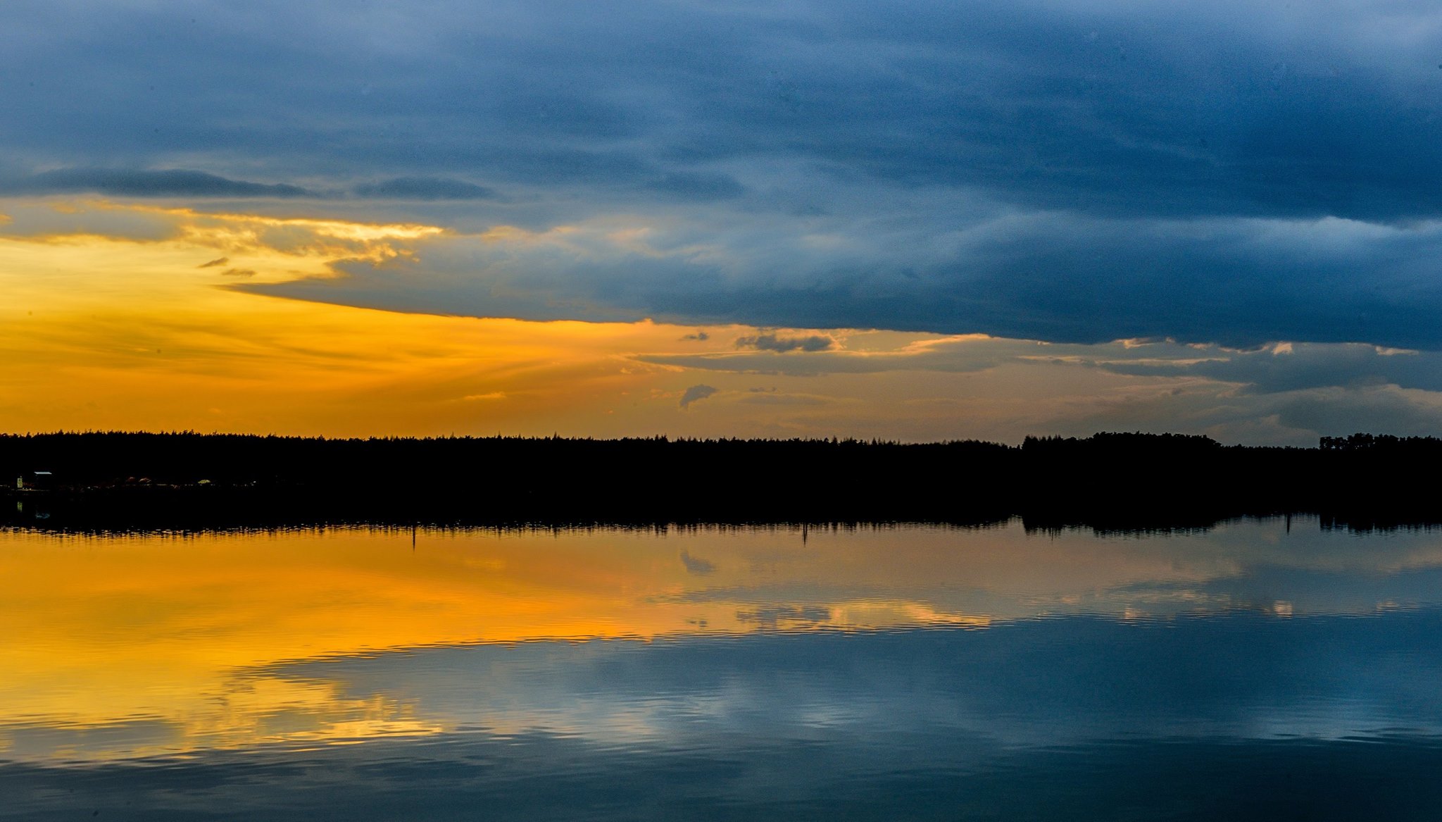 RADŁÓW. Niezwykła barwa zachodu słońca nad akwenem pożywirowym, zw. Wielkim Stawem, 5 sierpnia 2015 r.