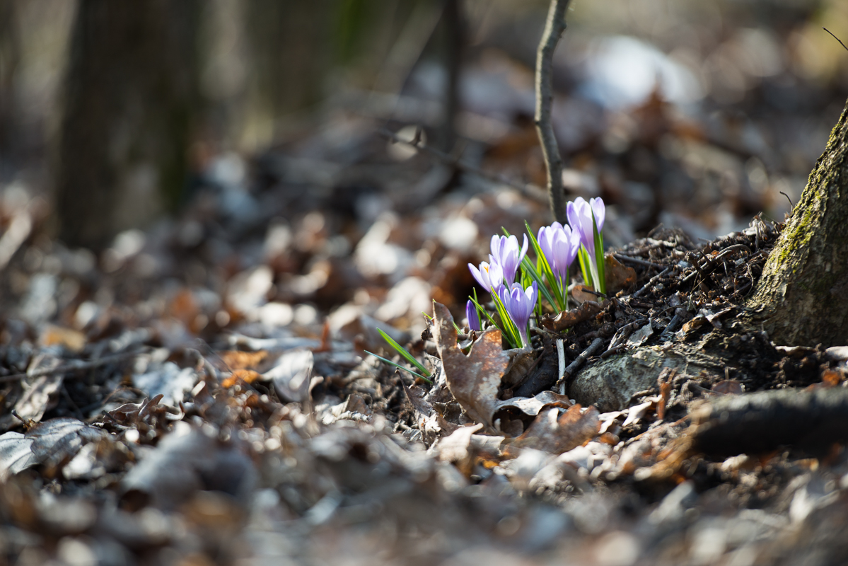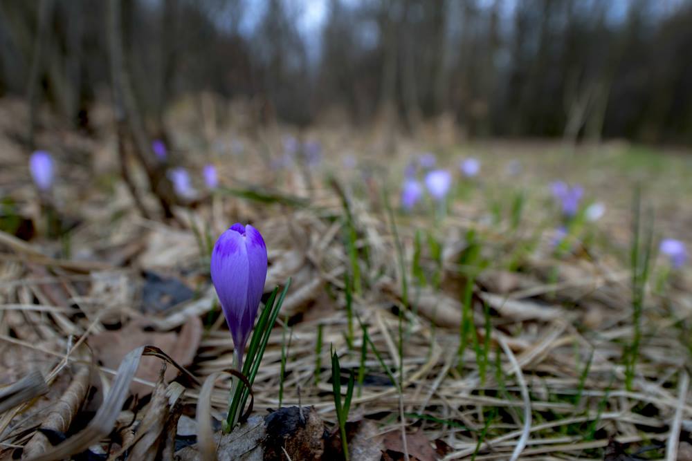 Szafran Spiski występujący na polanach śródleśnych w Brzeźnicy, 25 marca 2018 r.