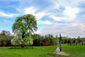 WAŁ-RUDA. Pięknie kwitnąca, ponad dwustuletnia grusza pod którą bł. Karolina Kózkówna katechizowała miejscowe dzieci i młodzież. 27 kwietnia 2015.