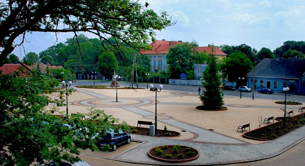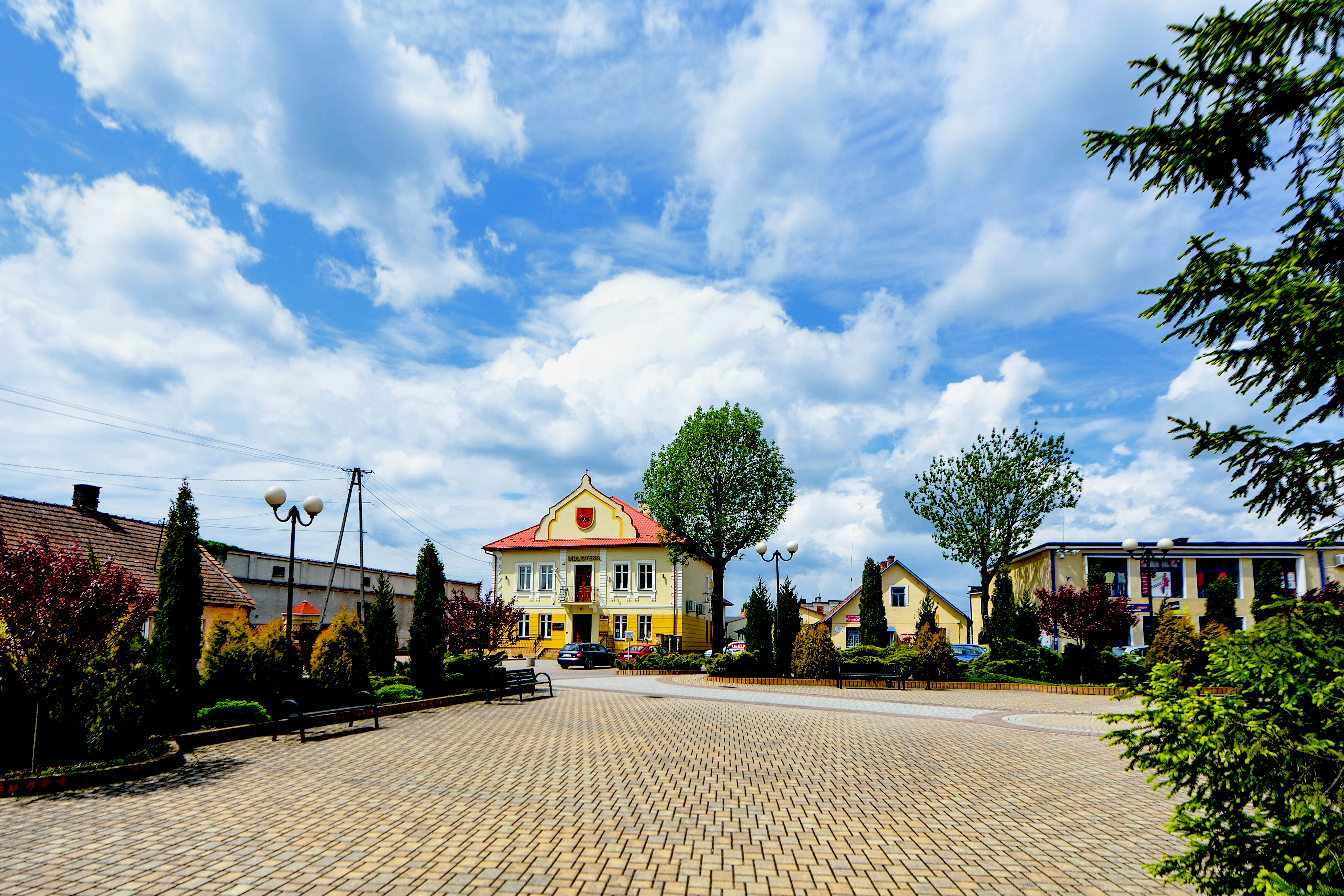 RADŁÓW. W tle, radłowski Ratusz – siedziba Miejskiej Biblioteki Publicznej, 17.05.2016.