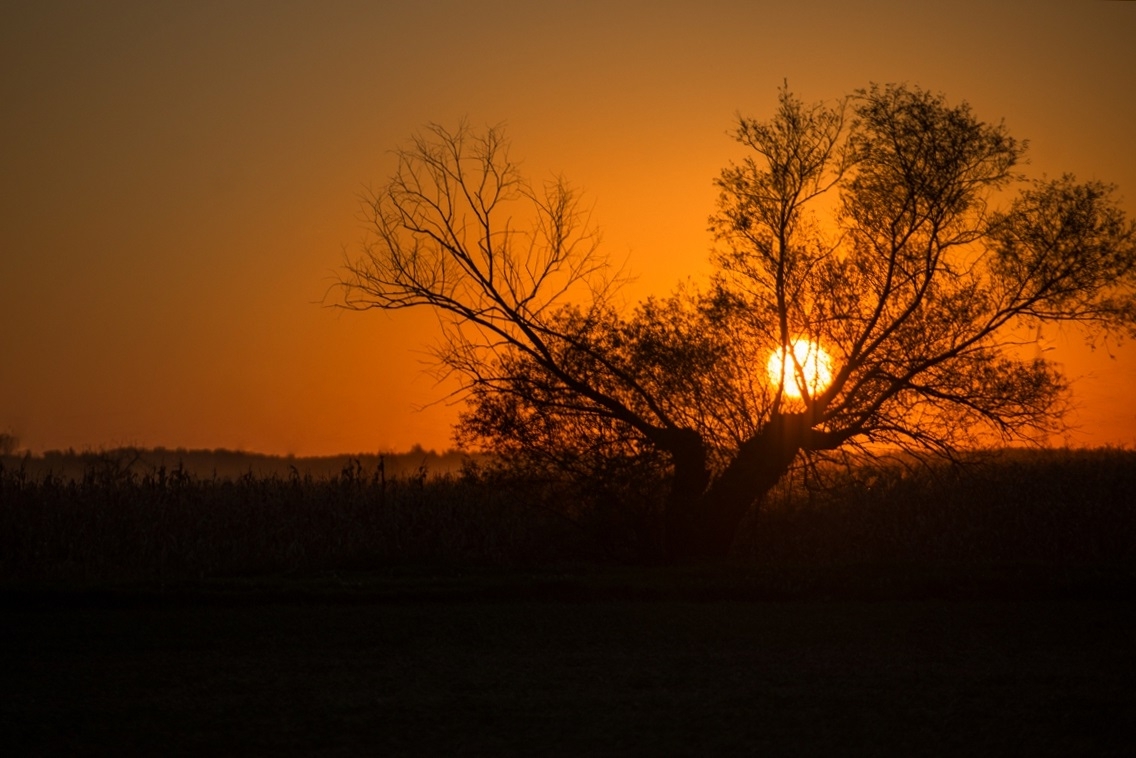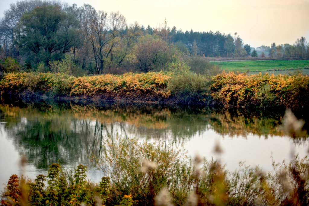 Jesienny pejzaż. Schyłek dnia nad Wolą Radłowską, 21.10.2017.