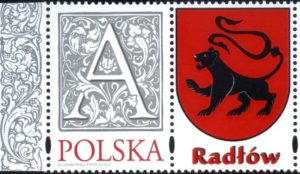 Na drugim kolekcjonerskim znaczku ukazaliśmy herb miasta Radłowa z okazji 1. rocznicy nadania praw miejskich, 2011.