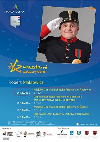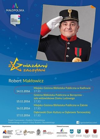 Spotkanie realizowane jest w ramach I edycji Budżetu Obywatelskiego Małopolski „Z gwiazdami zaczytani”. Wszystkim mieszkańcom miasta i radłowskiej gminy serdecznie dziękujemy za oddane głosy na nasze zadanie i pięknie zapraszamy na spotkanie.