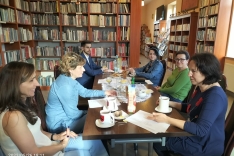 Pięć miesięcy minęło nie wiedzieć kiedy. A tyle czasu upłynęło od pierwszego spotkania Saloniku Literackiego. Za nami kolejne, piąte już spotkanie saloniku i czwarte Dyskusyjnego Klubu Książki. Czwartkowemu patronowała piękna data – 26 maja – Dzień Mamy. I pięknie było tego dnia, za oknem wiosna w rozkwicie, a u nas kwitną, rozwijają się i rosną plany. Omawiamy wiersze, teksty literackie, rozmawiamy o książkach przeczytanych, o tych które chcielibyśmy przeczytać, o życiu. Spotykamy się w miłym gronie interesujących ludzi, przy kawie, ciastku.