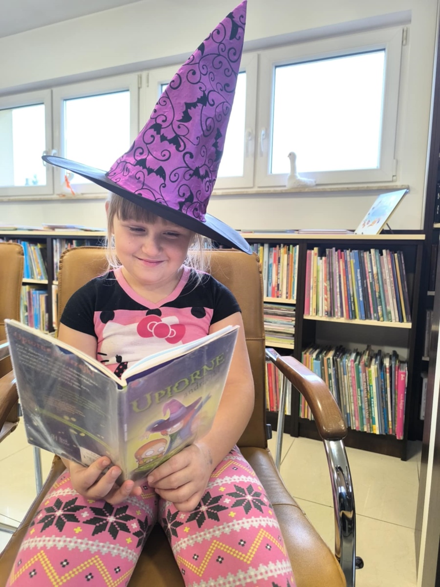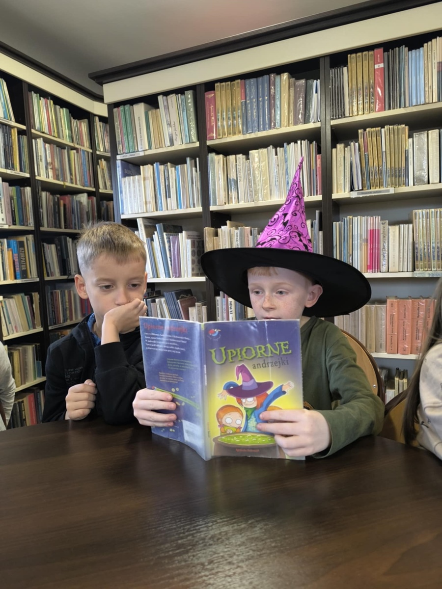 Tematem spotkania były zbliżające się andrzejki. Na tę okoliczność wspólnie przeczytaliśmy uroczą książkę Agnieszki Stelmaszyk pt. „Upiorne andrzejki”. Ponadto wspólnie przeprowadziliśmy wróżby andrzejkowe, rozwiązywaliśmy tematyczne krzyżówki, a na koniec odczarowaliśmy niezwykłą księgę w którym znalazły się andrzejkowe słodkości.