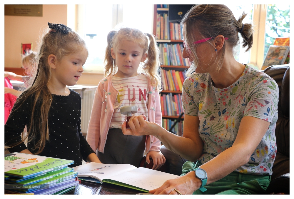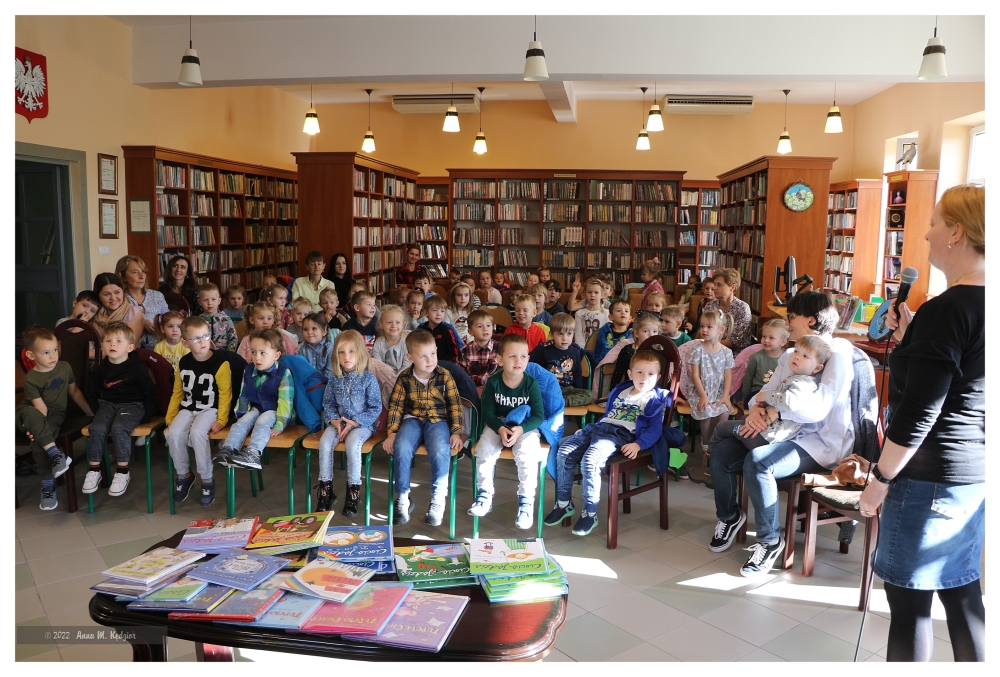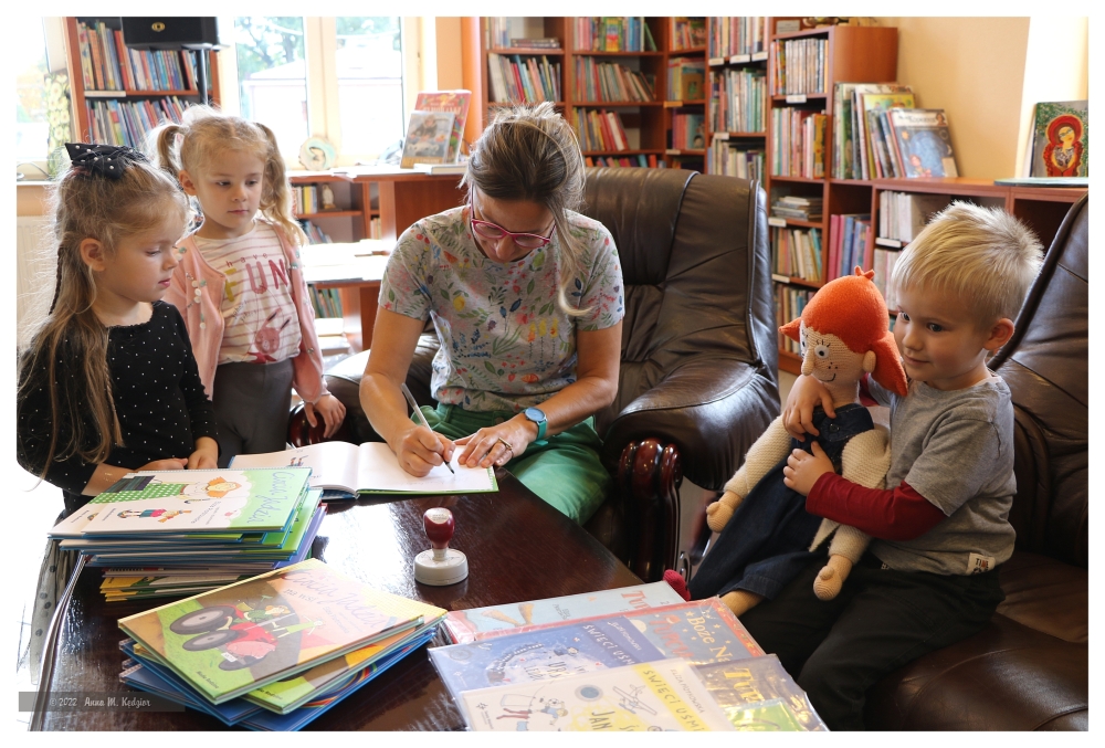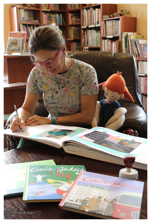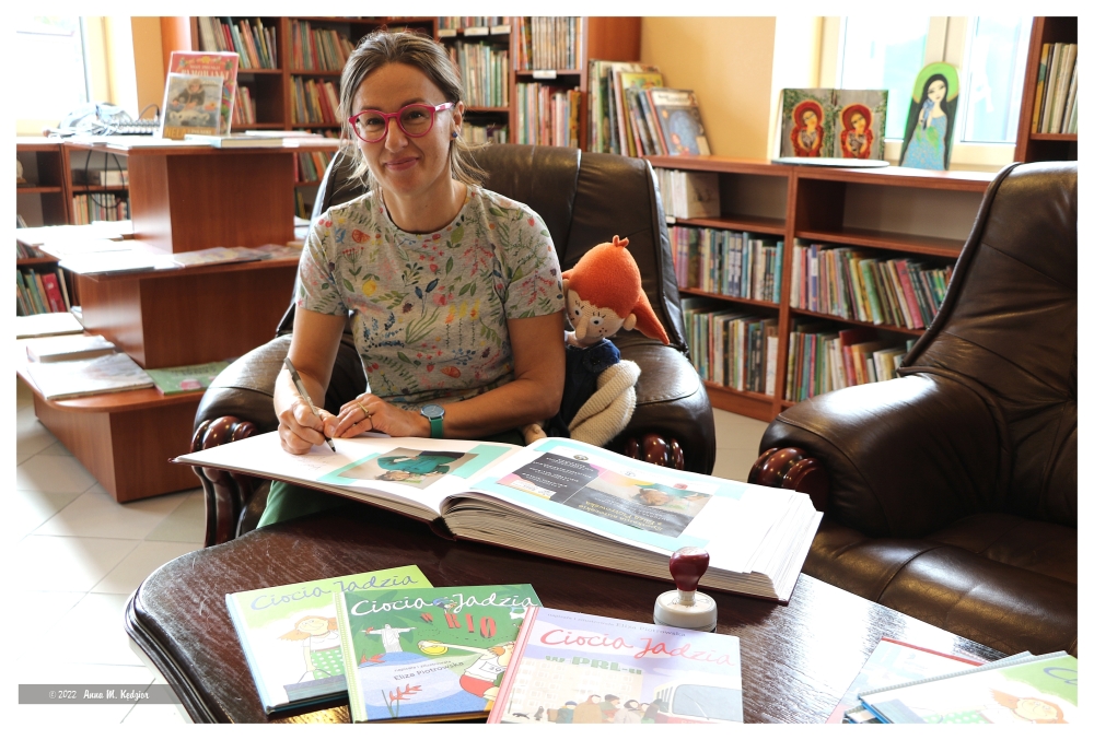 Po prezentacji książek, wielu zadanych pytaniach, przyszedł czas na zakup książek, autografy i wspólne zdjęcia. Dzieci jeszcze długo z przyjemnością wspominać będą spotkanie z autorką, a po przygody „Tupcia – Chrupcia”, czy „Cioci Jadzi” mogą zawsze sięgnąć odwiedzając naszą bibliotekę.
