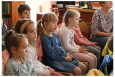 Na spotkanie z autorką przygód m.in. „Tupcia – Chrupcia” i „Cioci Jadzi” przybyły przedszkolaki z Radłowa oraz Niwki wraz z wychowawcami i opiekunkami. Dzieci dobrze znały przygody Tupcia – Chrupcia, co udowodniły odpowiadając na zadane pytania, zapoznały się też z maskotką jaką zaprezentowała Pani Eliza – była to pięknie wykonana, szydełkowa laleczka przedstawiająca bohaterkę znanej serii książek o „Cioci Jadzi”.