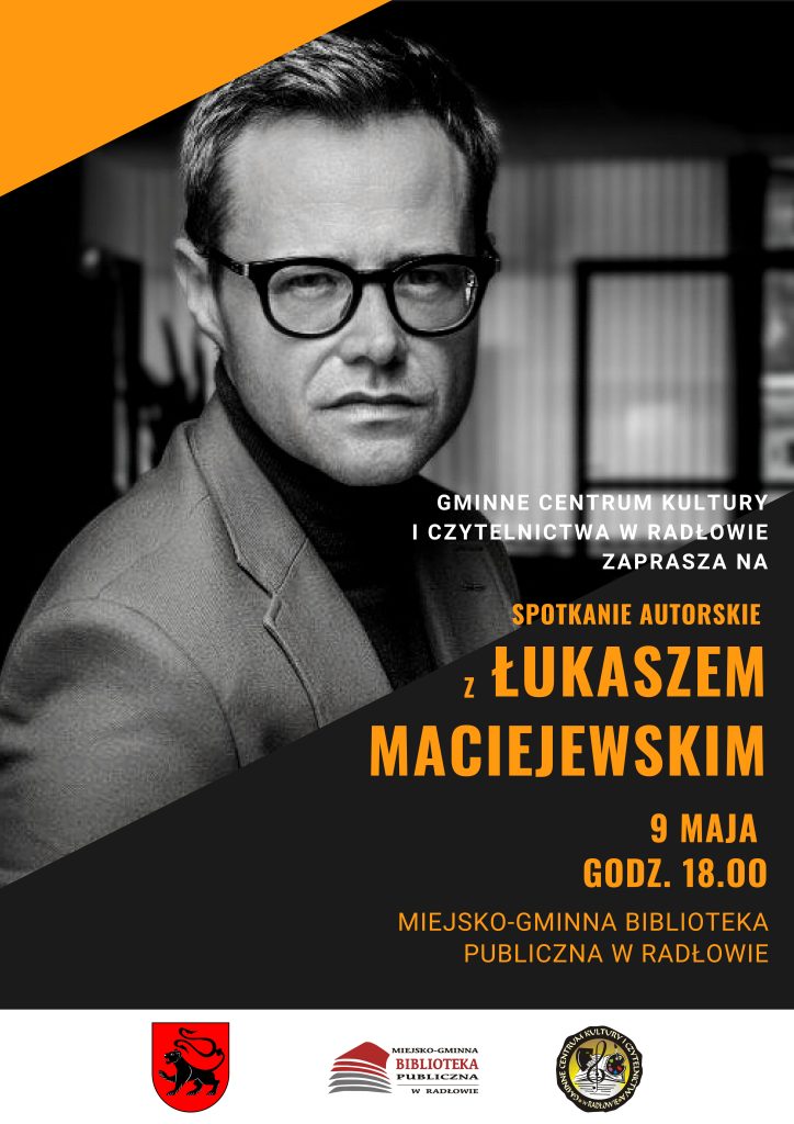 Gminne Centrum Kultury i Czytelnictwa w Radłowie zaprasza na spotkanie autorskie z Łukaszem Maciejewskim, które odbędzie się 9 maja (poniedziałek) o godzinie 18.oo
