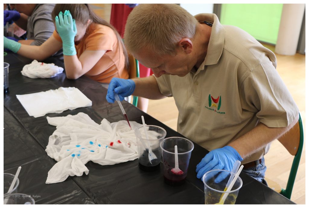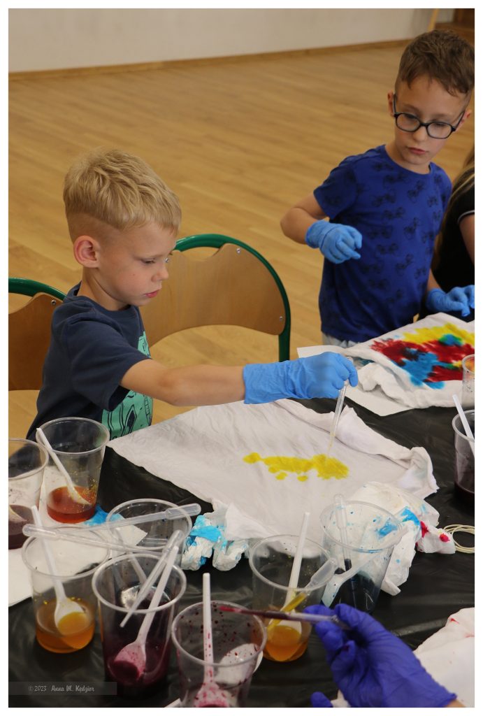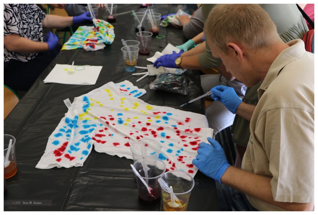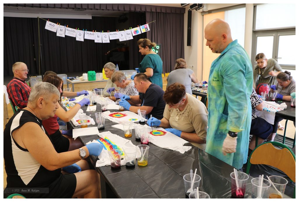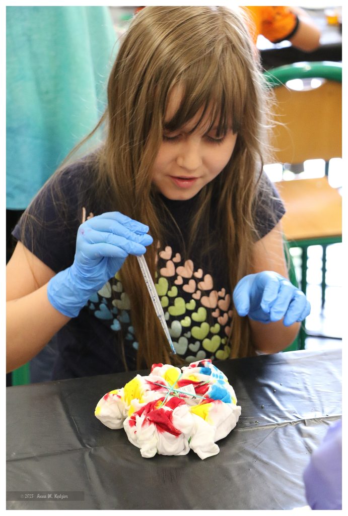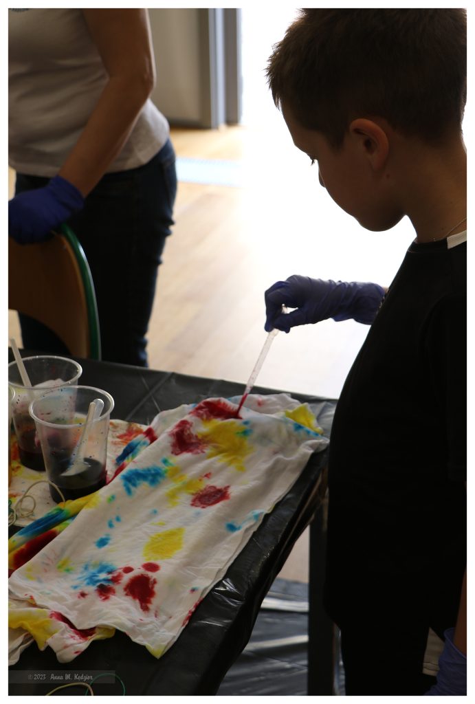 Najważniejsze w farbowaniu jest to, by kolory były trwałe. Przepis na dobre farbowanie naukowcy udostępnili każdemu uczestnikowi zajęć, a wszyscy stali się właścicielami samodzielnie ufarbowanych koszulek. Każda z nich jest niepowtarzalna i jedyna w swoim rodzaju, przygotowana według autorskiego pomysłu wykonawców.