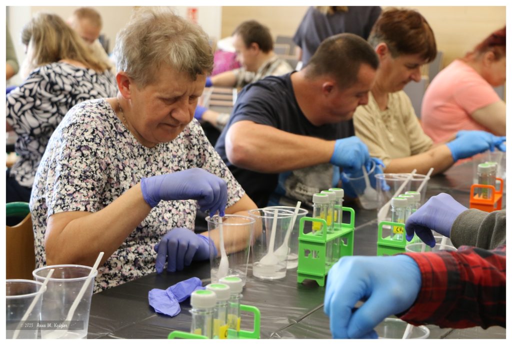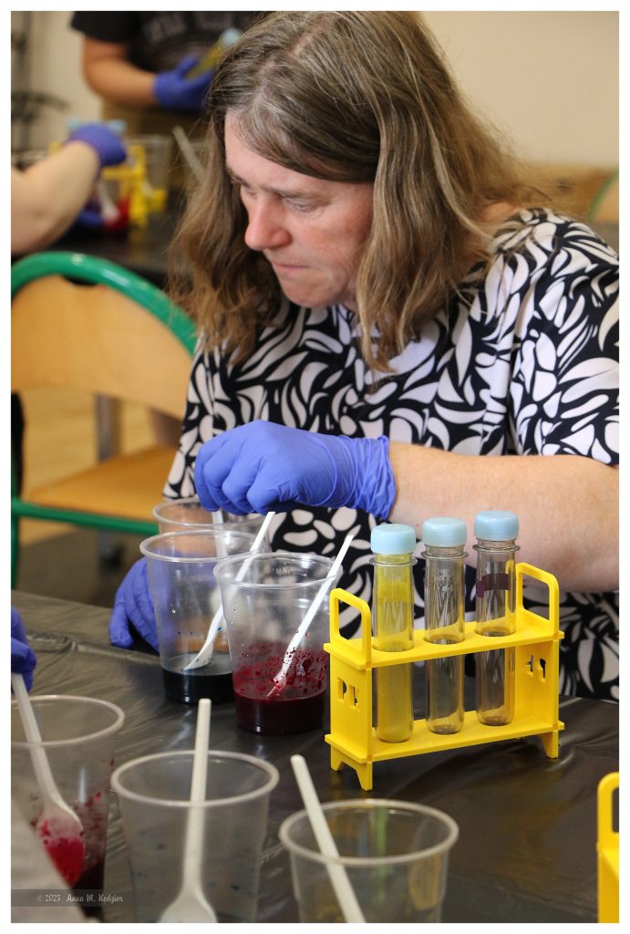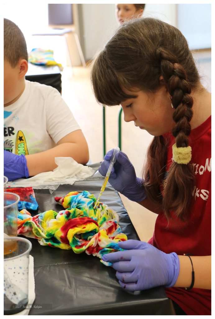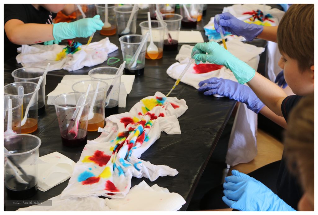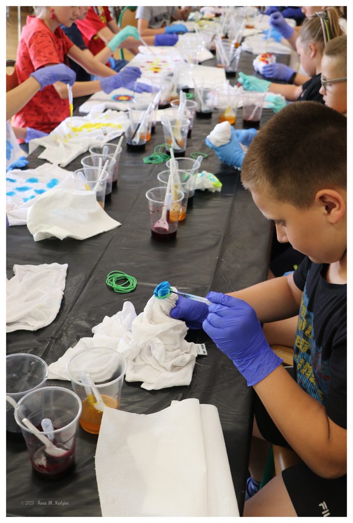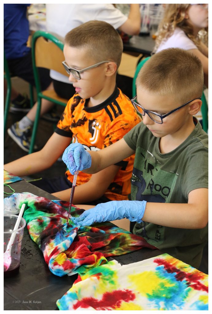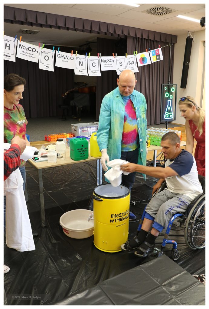 Najważniejsze w farbowaniu jest to, by kolory były trwałe. Przepis na dobre farbowanie naukowcy udostępnili każdemu uczestnikowi zajęć, a wszyscy stali się właścicielami samodzielnie ufarbowanych koszulek. Każda z nich jest niepowtarzalna i jedyna w swoim rodzaju, przygotowana według autorskiego pomysłu wykonawców.