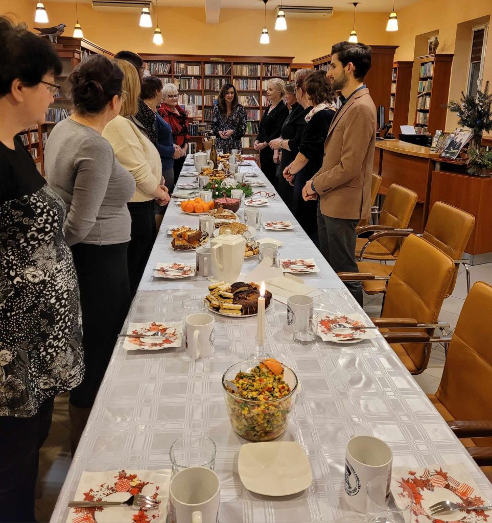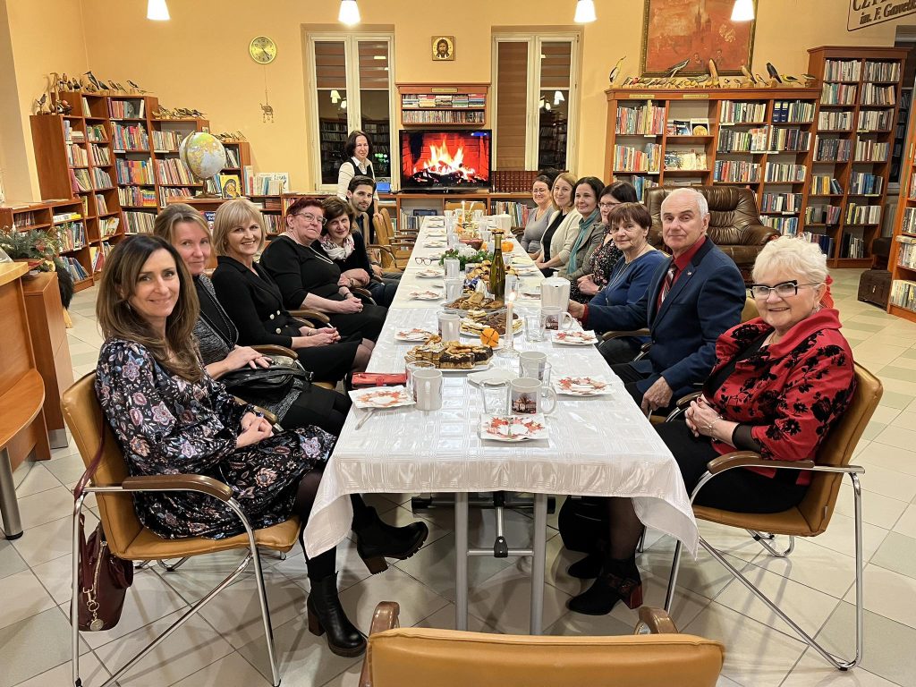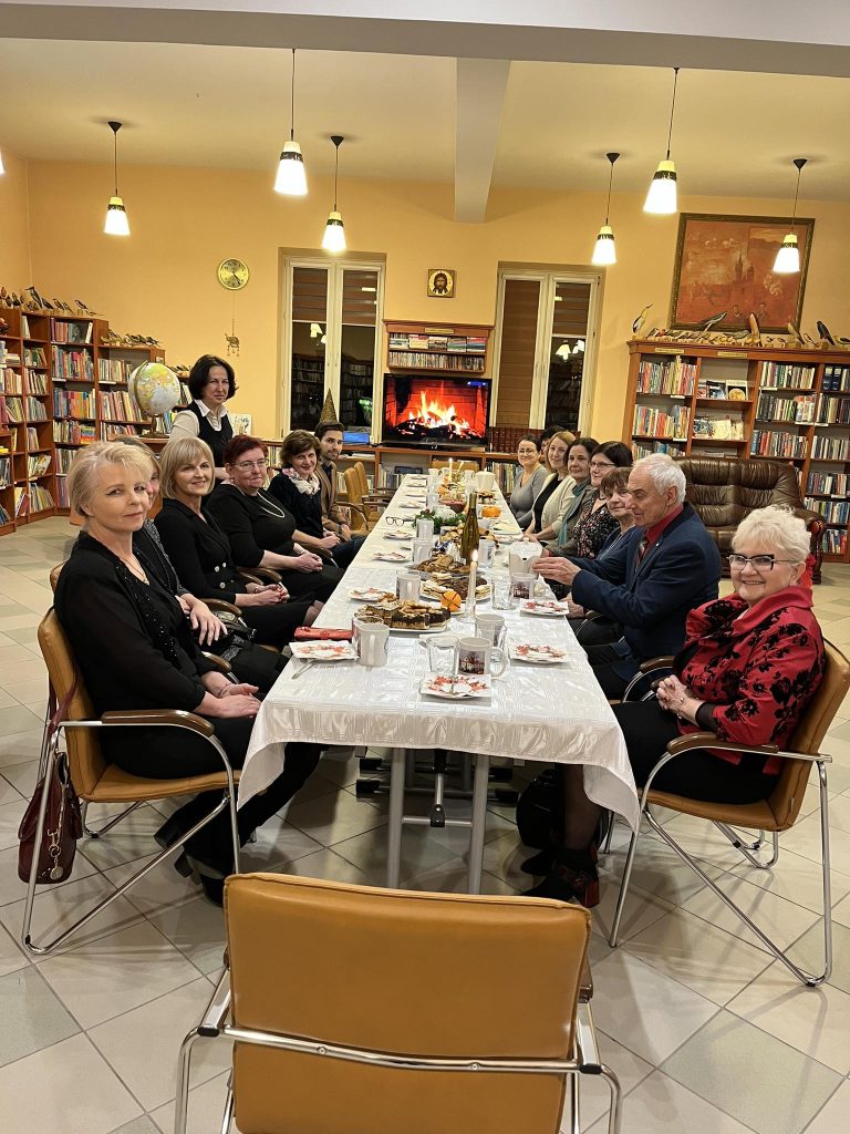 Światła w bibliotece paliły się wczoraj (28.12.2023) do późna, a to za sprawą ostatniego już w tym roku spotkania Saloniku literackiego i DKK. Do grona biesiadników dołączyli ikonopisarze, a raczej ikonopisarki z zawiązanej po warsztatach ikonopisania grupy. Wspaniale było zasiąść w tak licznym, radosnym towarzystwie. Zaszczyciła nas swą obecnością pani Marta Odbierzychleb wraz z małżonkiem panem Tadeuszem. Pani Marta prowadziła warsztaty i cały czas wspiera piszących ikony swą pomocą. Były życzenia, śpiew kolęd, wspólna modlitwa, ale przede wszystkim była radość. Radość z przebywania ze sobą, radość rozmowy, radość z tego, co w całym minionym roku się zadziało i co wydarzy się w przyszłości.