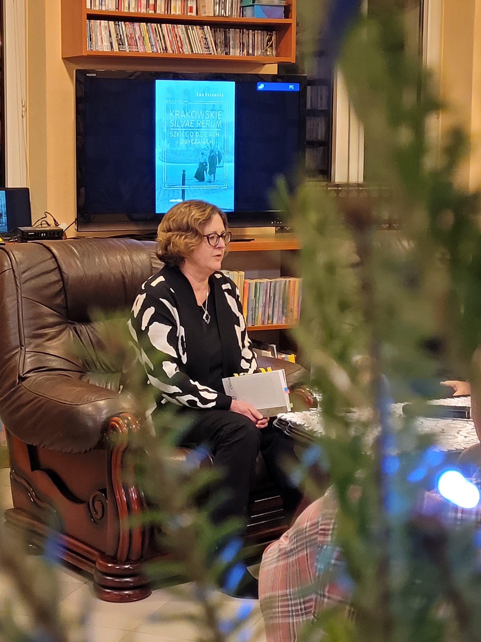W ostatni czwartek (19.12.2024) w Miejsko-Gminnej Bibliotece Publicznej w Radłowie odbyło się spotkanie z prof. Ewą Danowską, która napisała kolejną książkę związaną z Krakowem. To już druga z serii Krakowskie silvae rerum; poprzednia mówiła o ludziach, a ta przybliża nam obyczaje. Sporo z nich nie przetrwało do współczesnych czasów, ale warto się z nimi zapoznać. Egzemplarz tej puplikacji mamy w zasobach naszej biblioteki, więc zapraszamy do wypożyczania. Spotkanie z autorką prowadził już tradycyjnie pan Józef Trytek, który był już po lekturze „Krakowskie silvae rerum. Szkice o dziejach i obyczajach” – bardzo mu się podobała. Wśród publiczności znaleźli się zainteresowani tematem słuchacze, którzy chętnie zadawali pytania pani Ewie. Było nam bardzo miło spotkać się znowu z panią profesor, która zdradziła, że ma już materiał na kolejną część krakowskiego silvae rerum. Zatem do zabaczenia za rok na kolejnym spotkaniu z prof. Ewą Danowską.