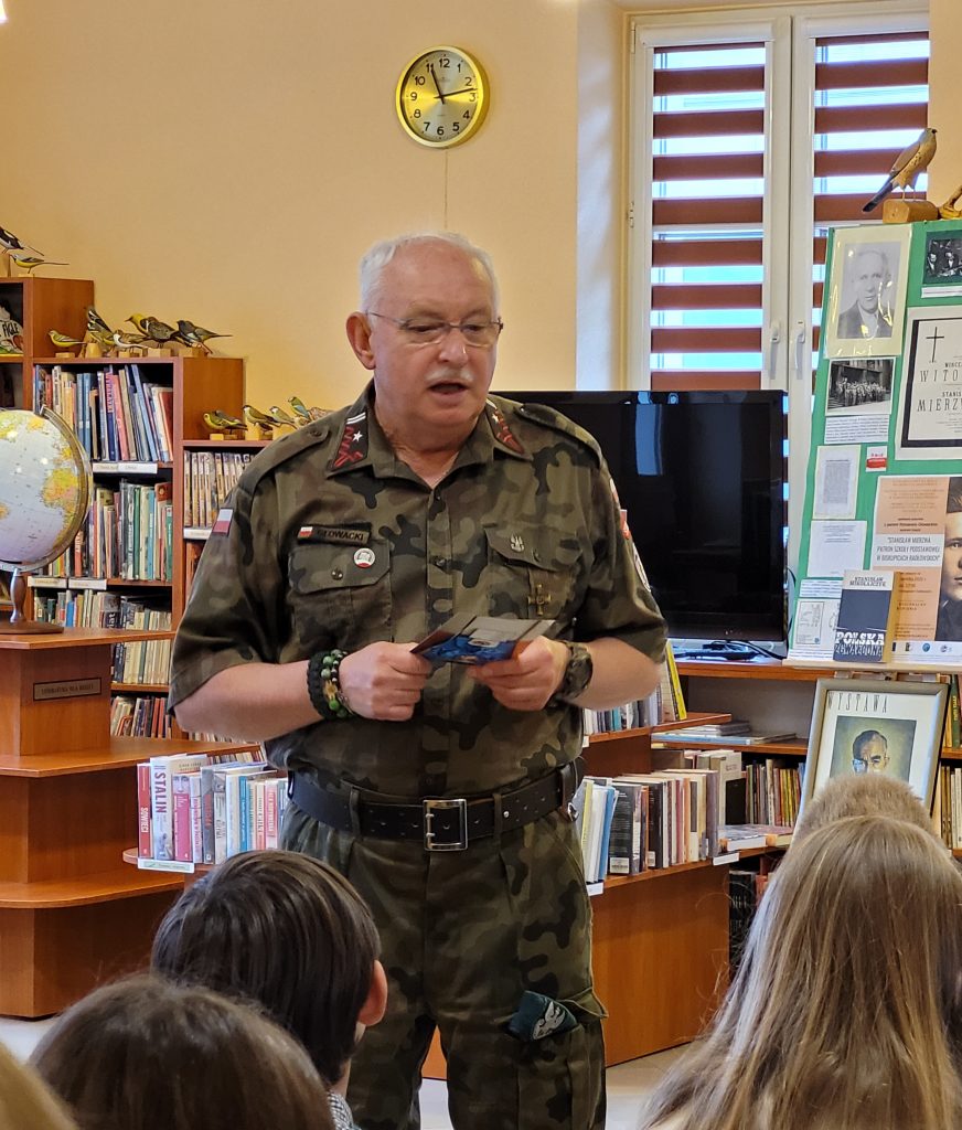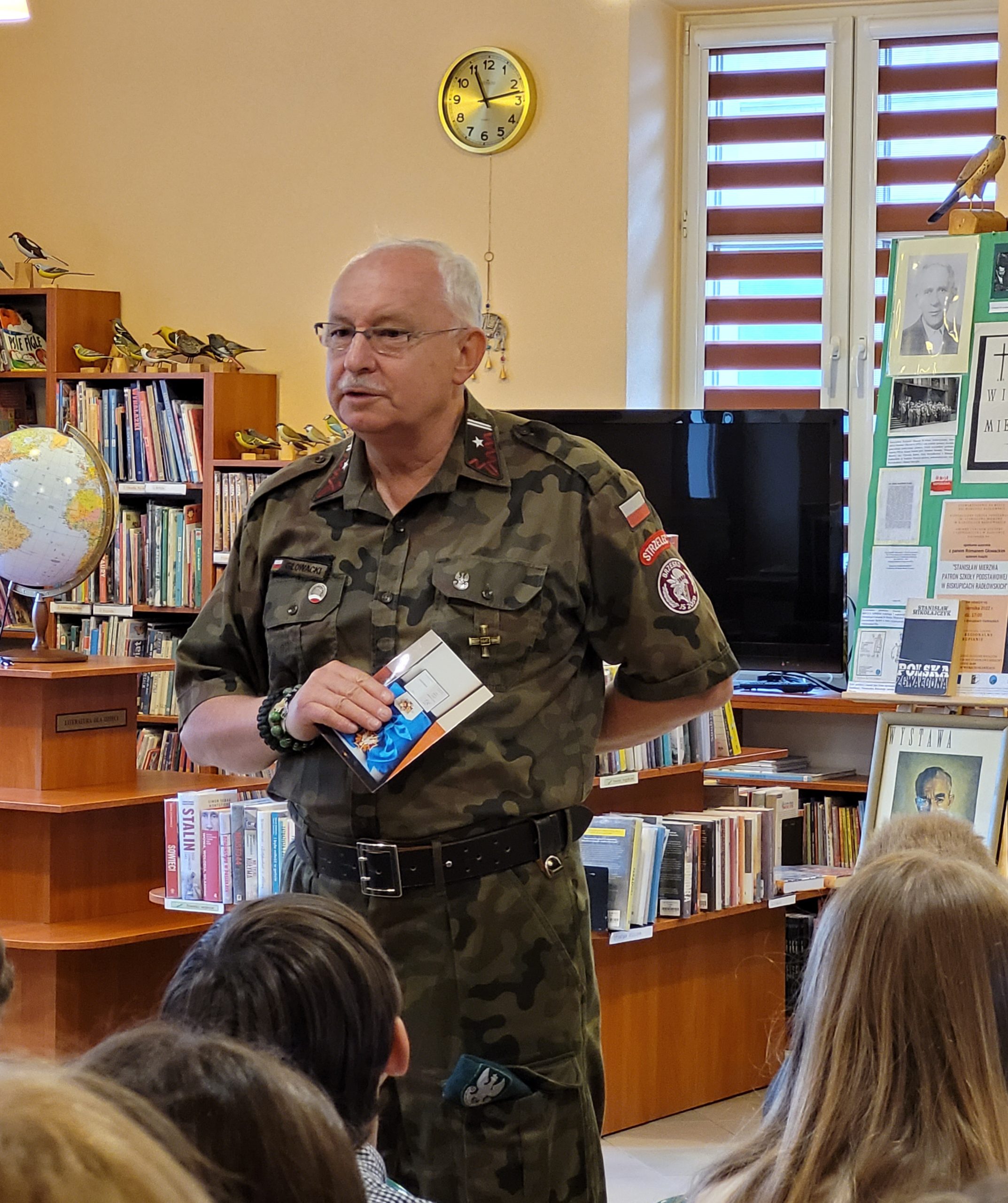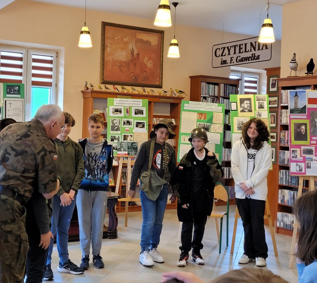 Dziękujemy Panu Romanowi Głowackiemu za pasję, poświęcenie i budzenie w młodzieży etosu patrioty poprzez przybliżanie postaci bohaterów narodowych oraz za podarowanie naszej bibliotece cennych publikacji. Jak wspomniał Pan Roman na odkrycie czeka kolejny, wielki Polak rodem z Biskupic Radłowskich- Józef Marcinkowski.