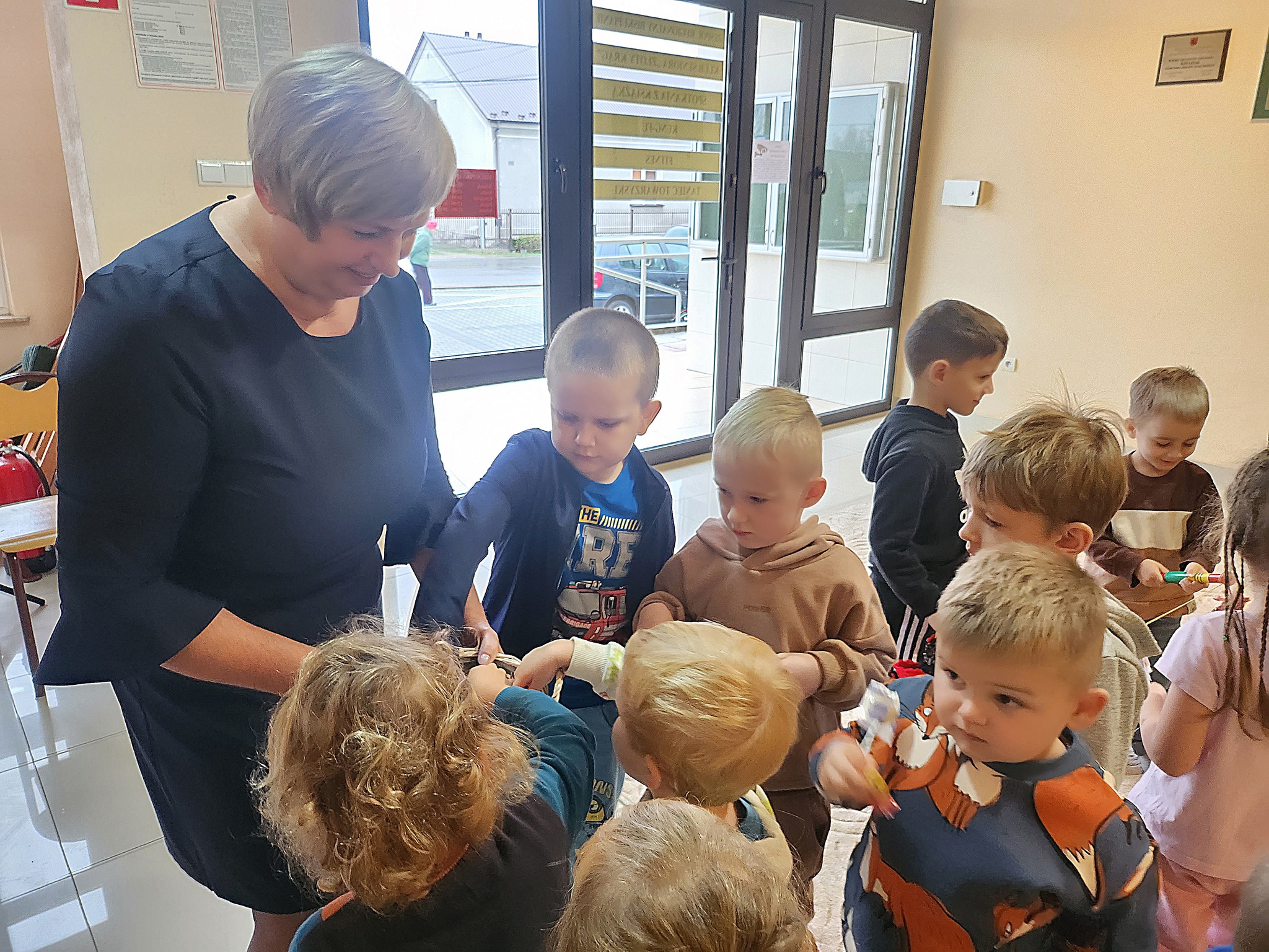 Na zakończenie spotkania przedszkolaki zostały obdarowane ręcznie wykonanymi z włóczki postaciami z bajek autorstwa Pani Stanisławy Tracz. Za współpracę i przygotowanie przedstawienia serdecznie dziękujemy Paniom: Stanisławie Tracz, Lucynie Kosman i Barbarze Ziejka.