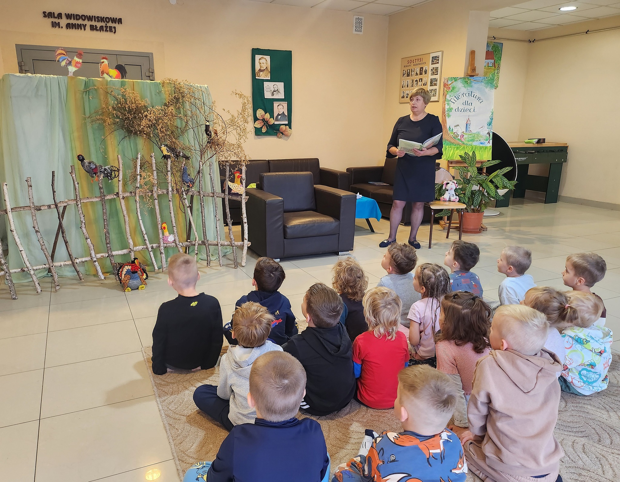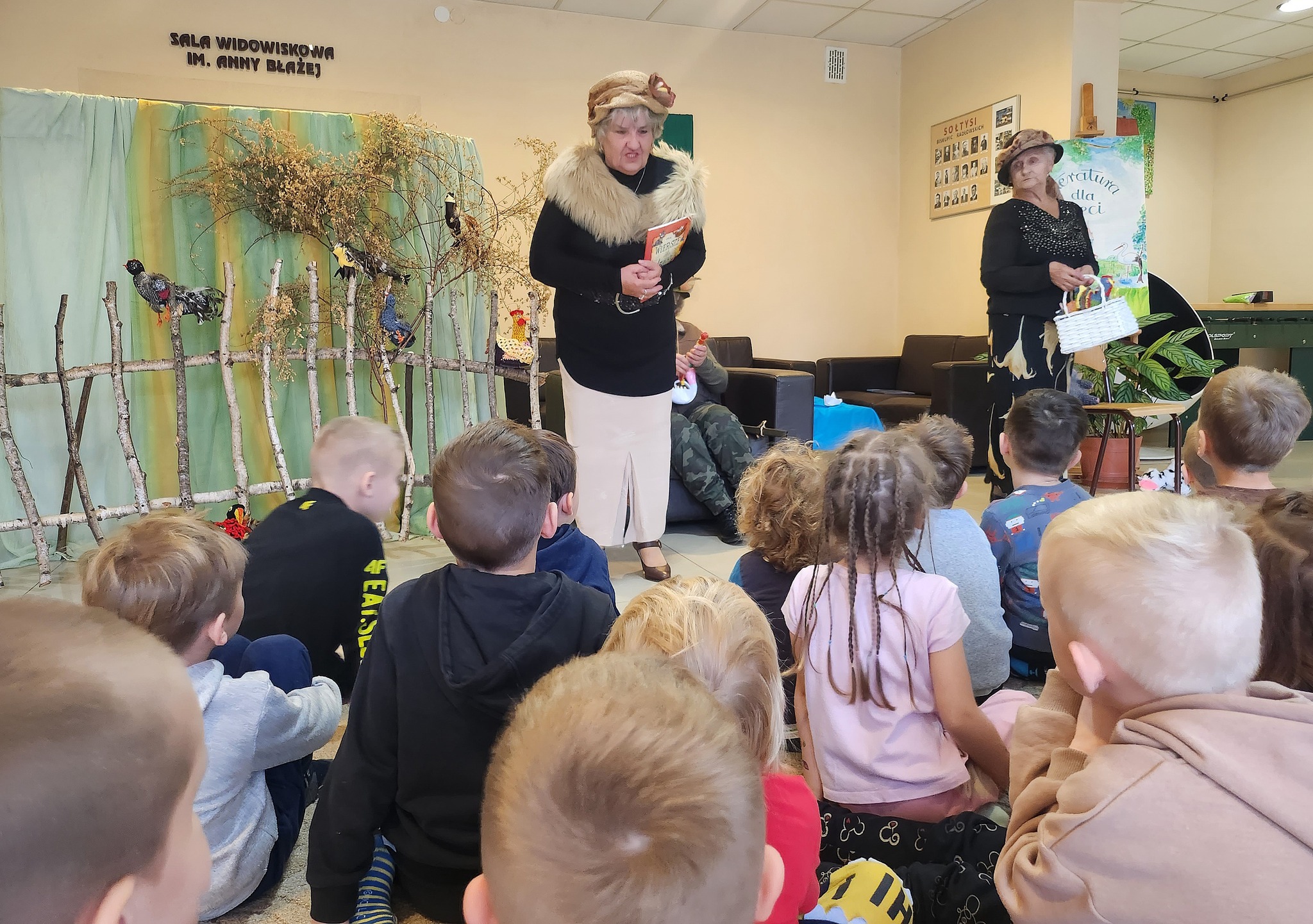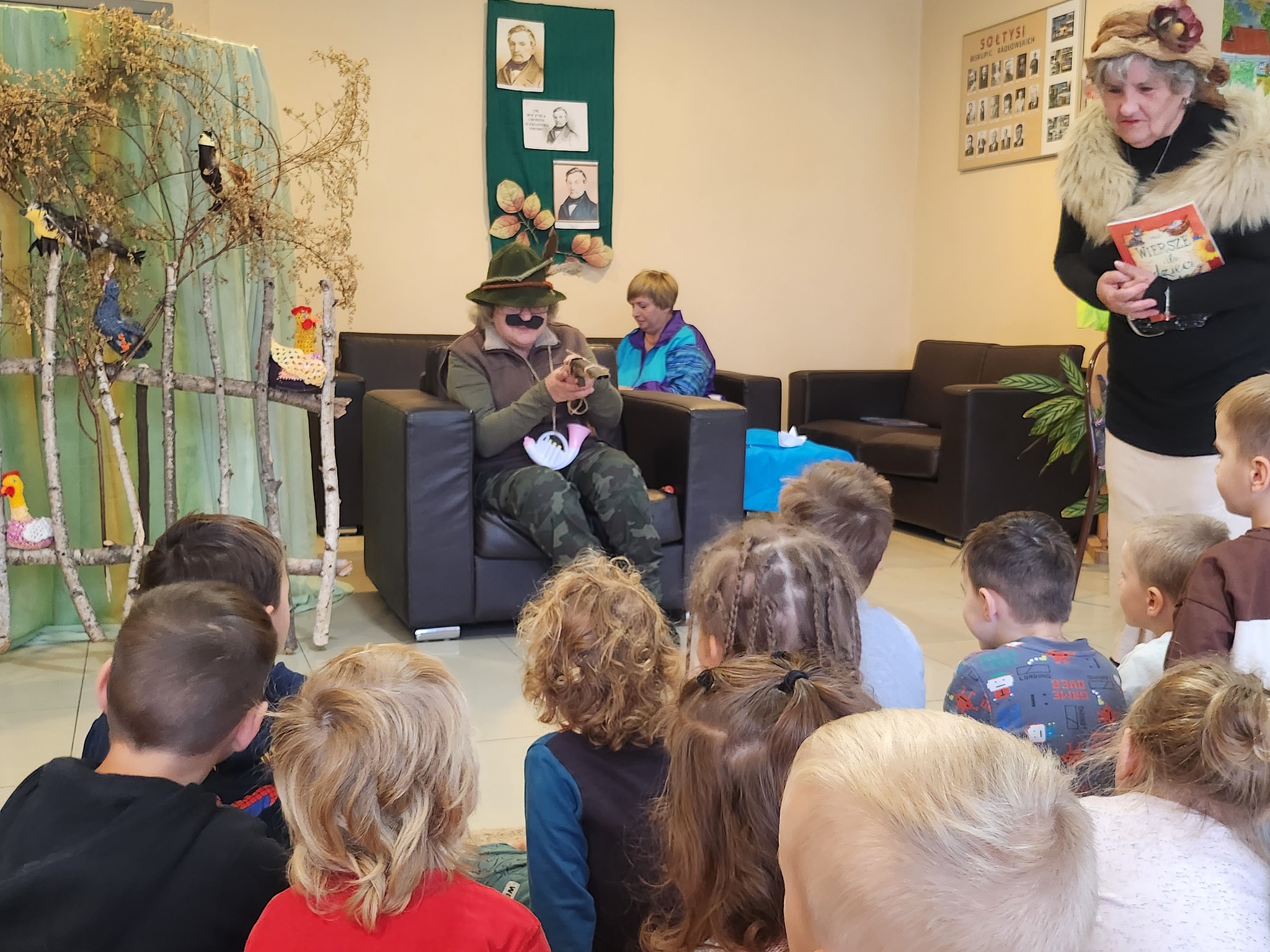 Biblioteka Publiczna w Biskupicach Radłowskich zaprosiła przedszkolaków z Niepublicznego Przedszkola wraz z wychowawcami na przedstawienie inspirowane utworami mistrza romantycznej komedii Aleksandra Fredry.