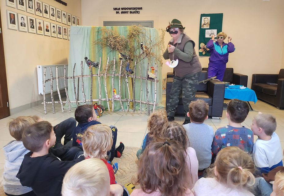 Teatrzyk” Gąska” przedstawił w formie kukiełkowej wiersze: „Sowa’ i „Koguty” a w formie żywego słowa „Paweł i Gaweł”.