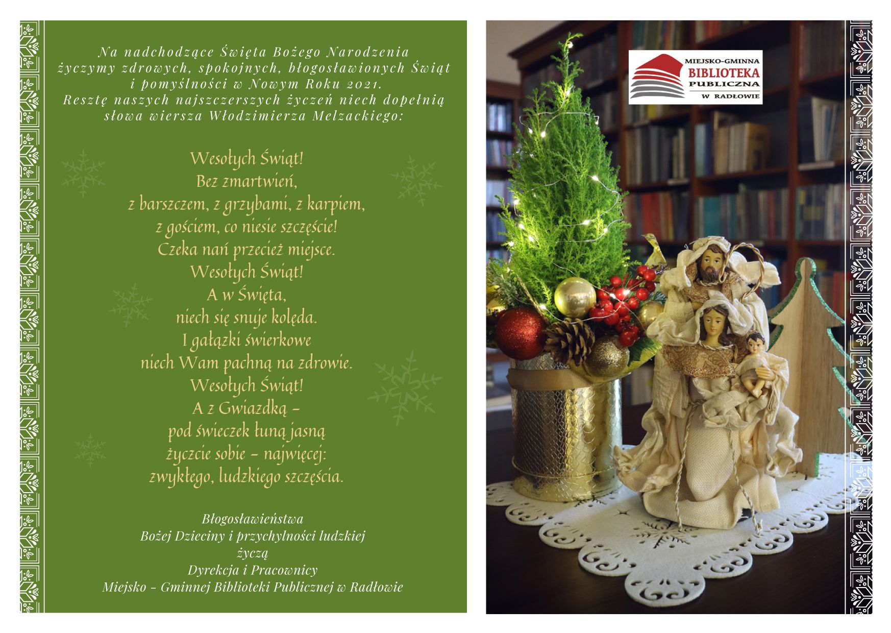 Biblioteka w Radłowie życzenia świąteczne