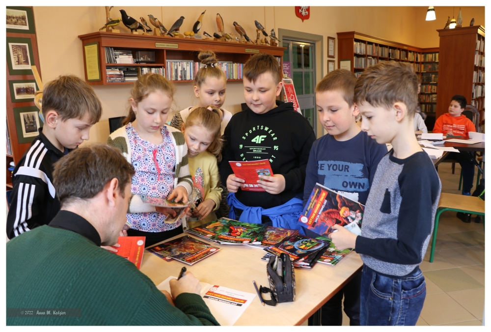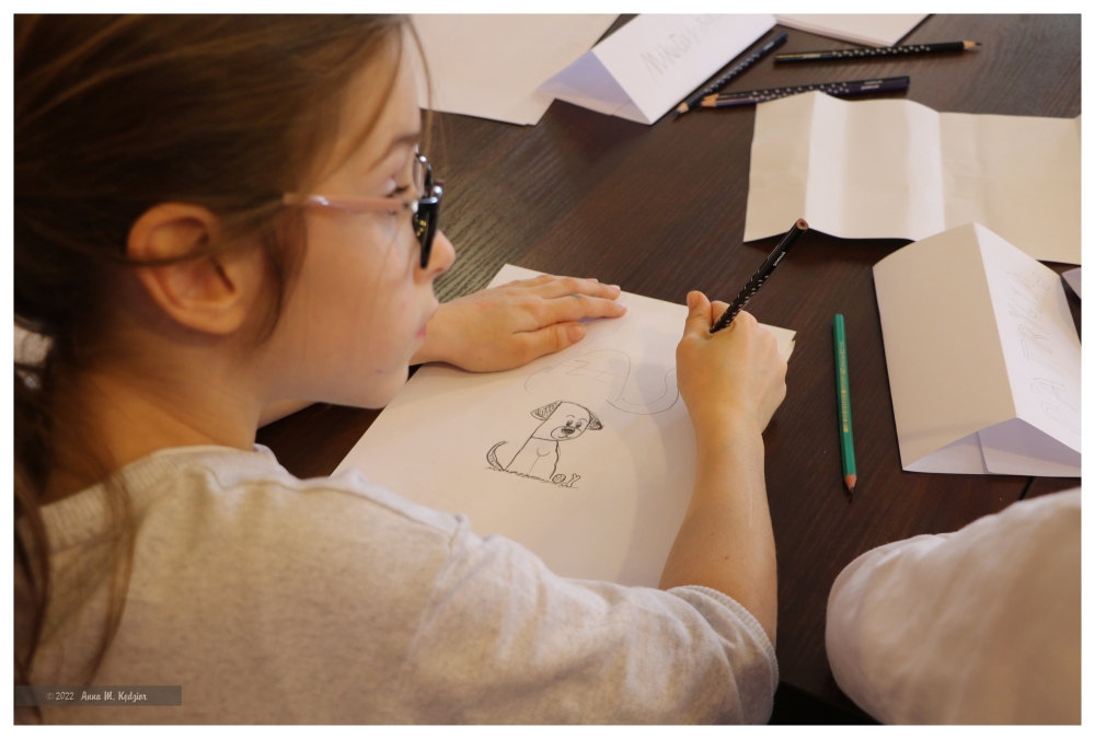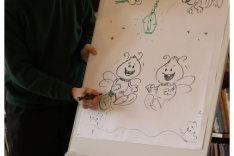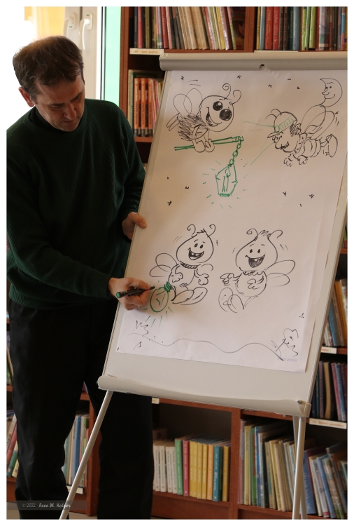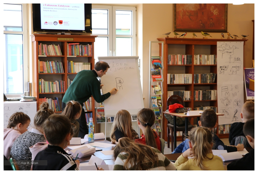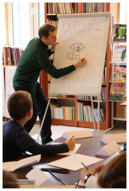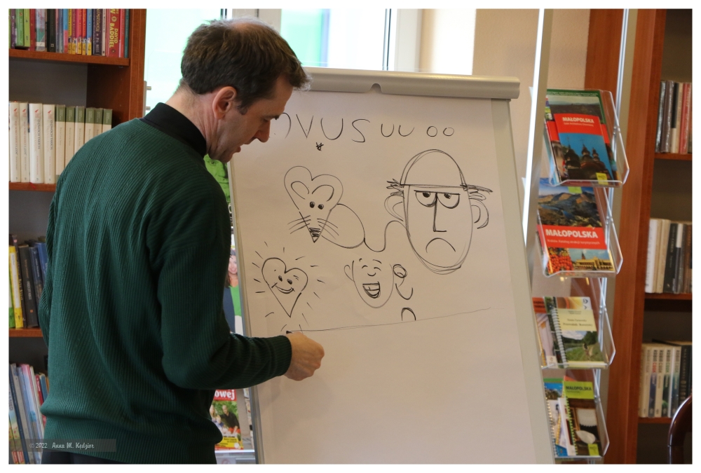 z twórcą książki – ilustratorem. Na koniec ilustrator wykonał dla każdego uczestnika rysunek