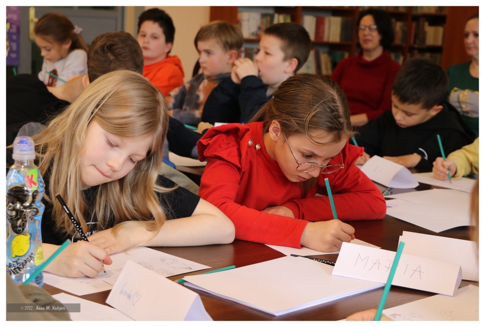 Uczestnicy spotkania poznali nie tylko warsztat ilustratora ale również sami pracowali twórczo. Spotkanie dostarczyło uczestnikom wielu emocji. Było okazją bezpośredniego kontaktu