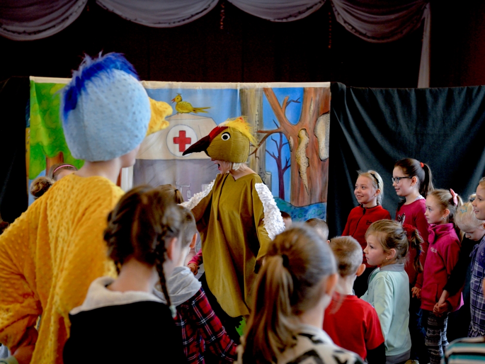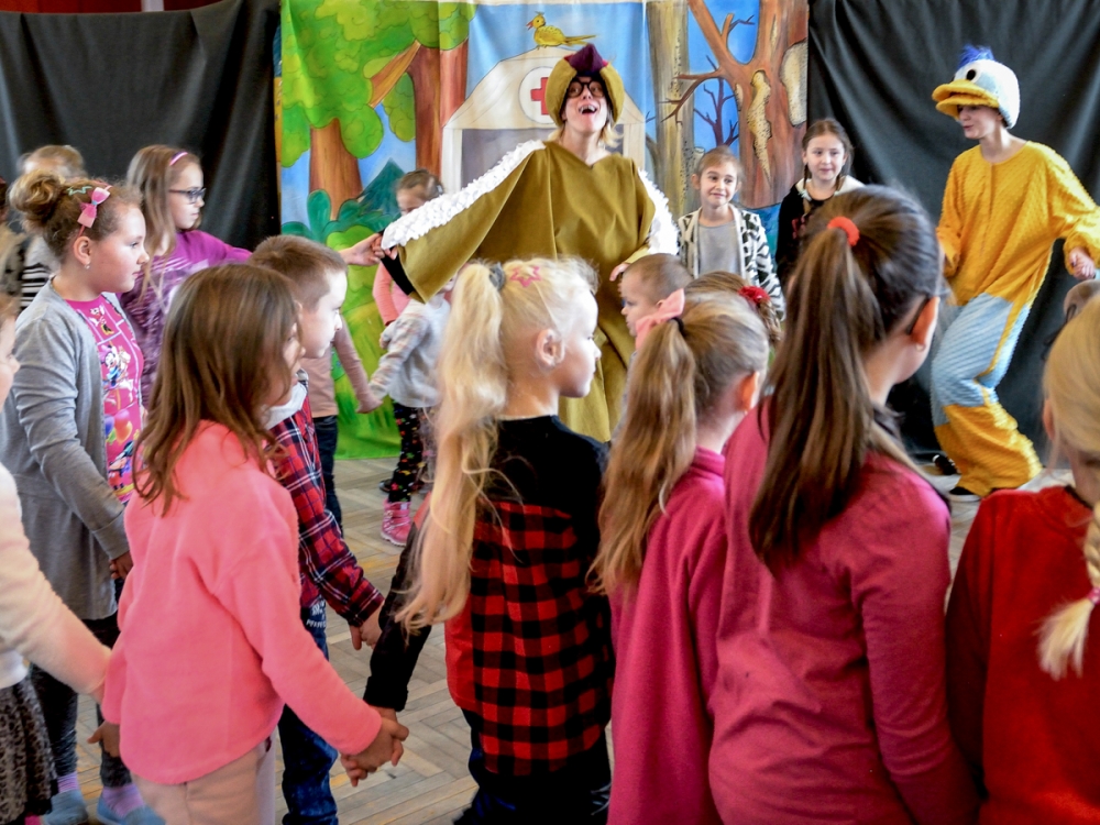 Bardzo zabawna historia: biedronki, leśniczego, kaczora oraz tytułowego Doktora. Dzieci z zaciekawieniem oglądały bajkę, brały też chętnie udział w aktorskiej grze.