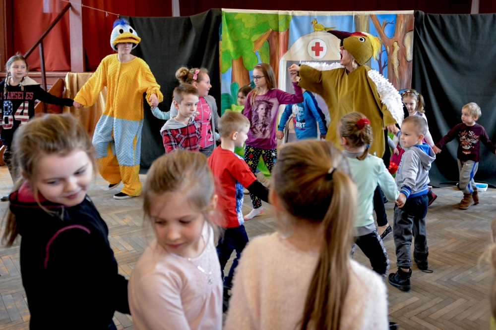 Kolejny tydzień ferii dla dzieci rozpoczął się spektaklem „Doktor Dzięcioł”, w wykonaniu aktorów z teatru ”Duet” w Krakowie.