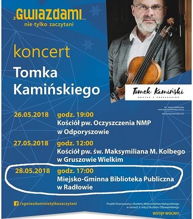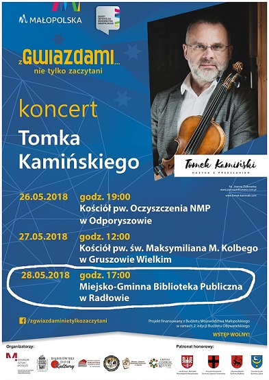 udziału w koncercie jest równoznaczny z wyrażeniem zgody na umieszczenie zdjęć i filmów zawierających wizerunek osób zarejestrowanych podczas imprezy w dniu 28 maja 2018 r. oraz na bezpłatne wykorzystanie jego wizerunku na materiałach informacyjnych dotyczących imprezy, takich jak strona internetowa biblioteki oraz jej partnerów, plakaty, ulotki oraz inne materiały w formie elektronicznej i drukowanej.