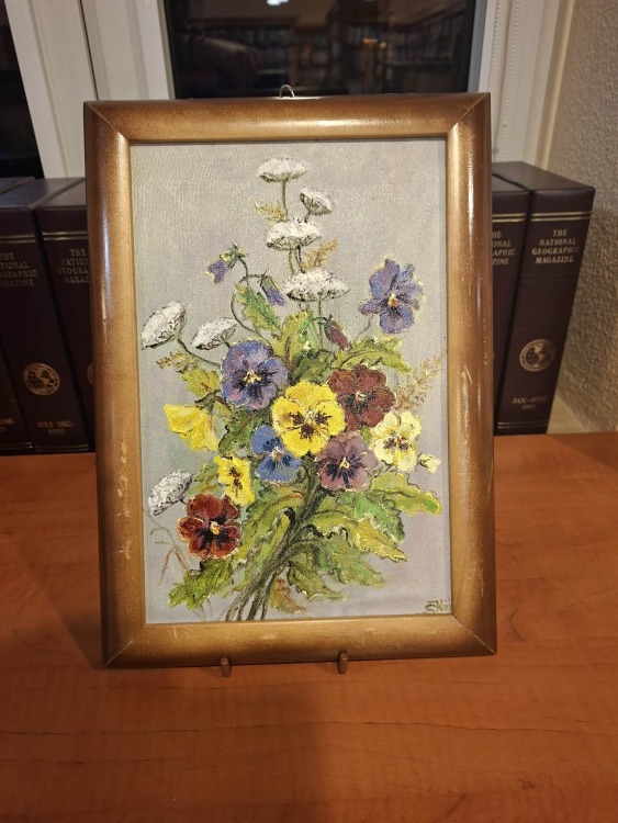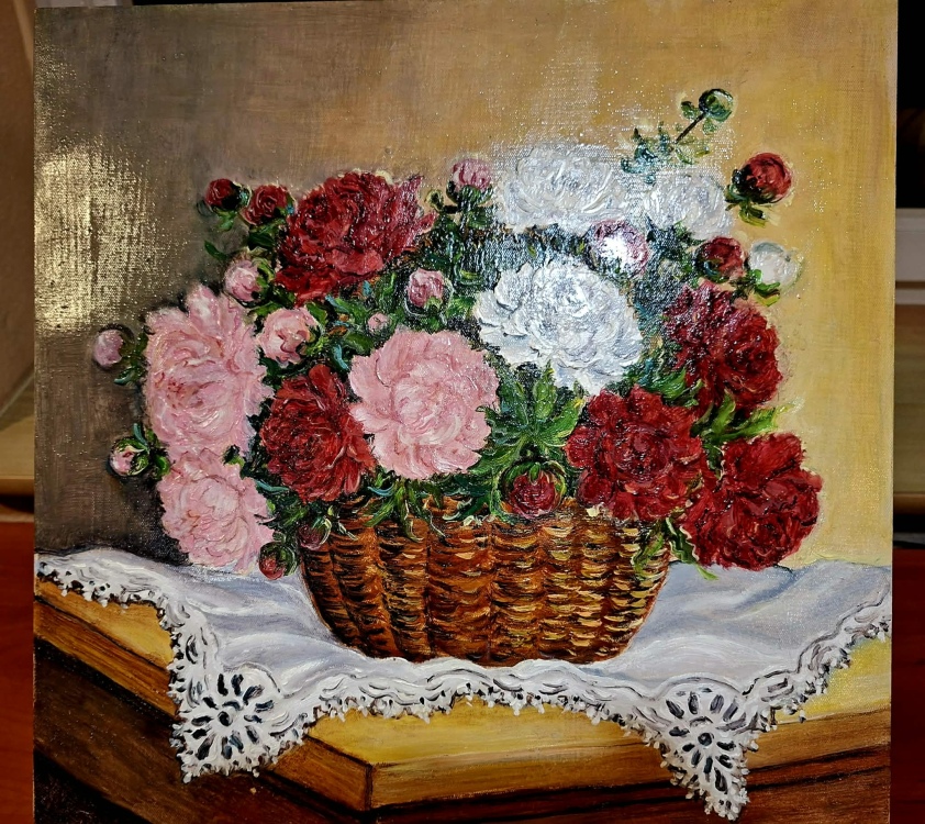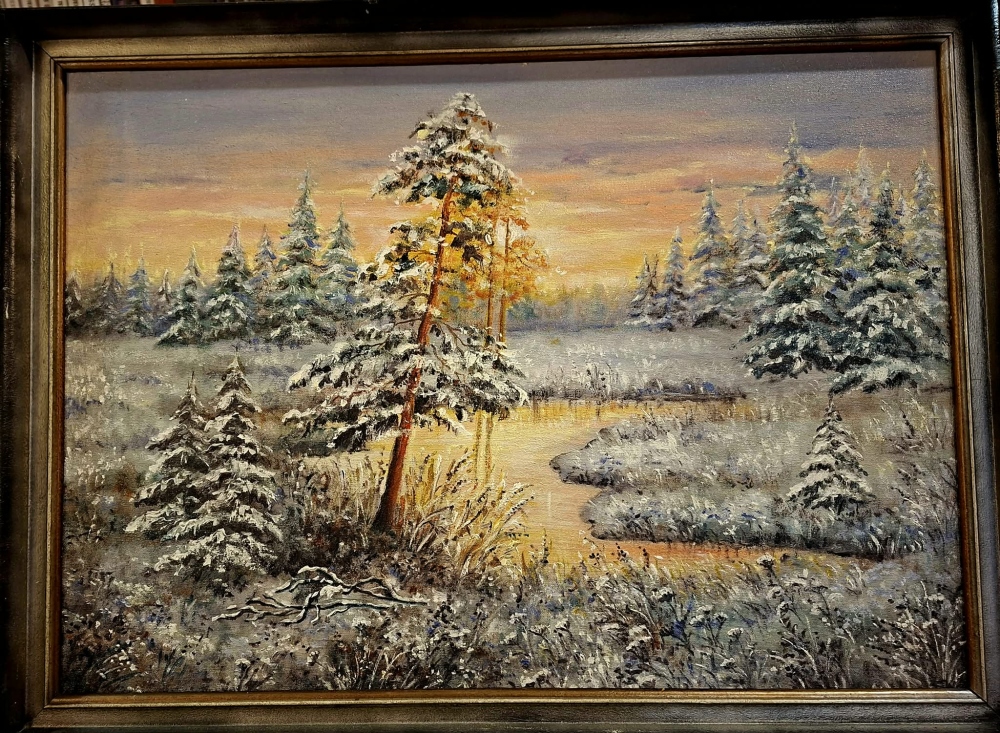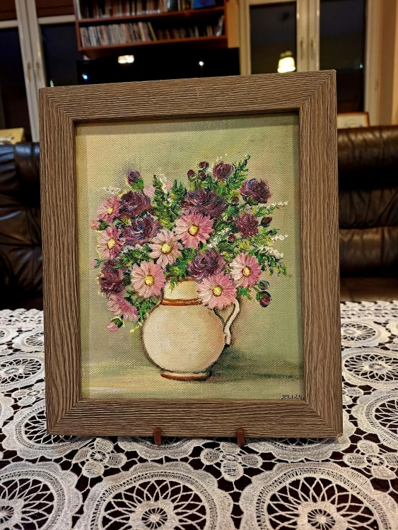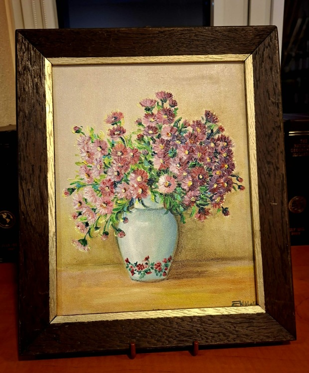 Kolekcję obrazów wykonanych przede wszystkim w technice olejnej, której motywami dominującymi są kwiaty i pejzaże można podziwiać w godzinach pracy biblioteki.