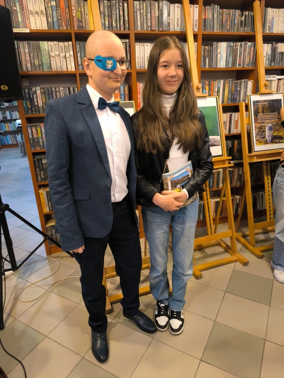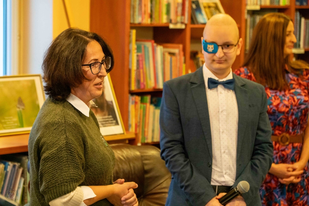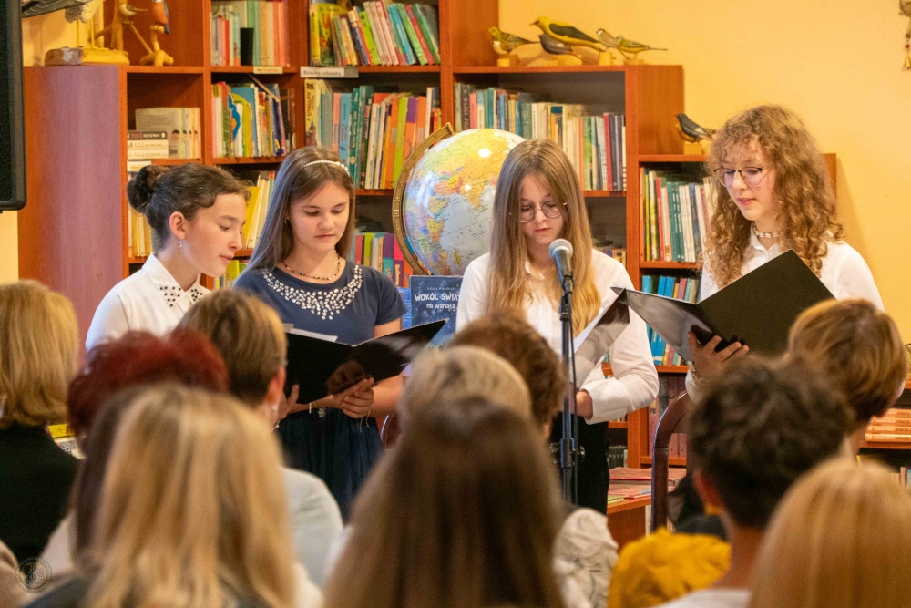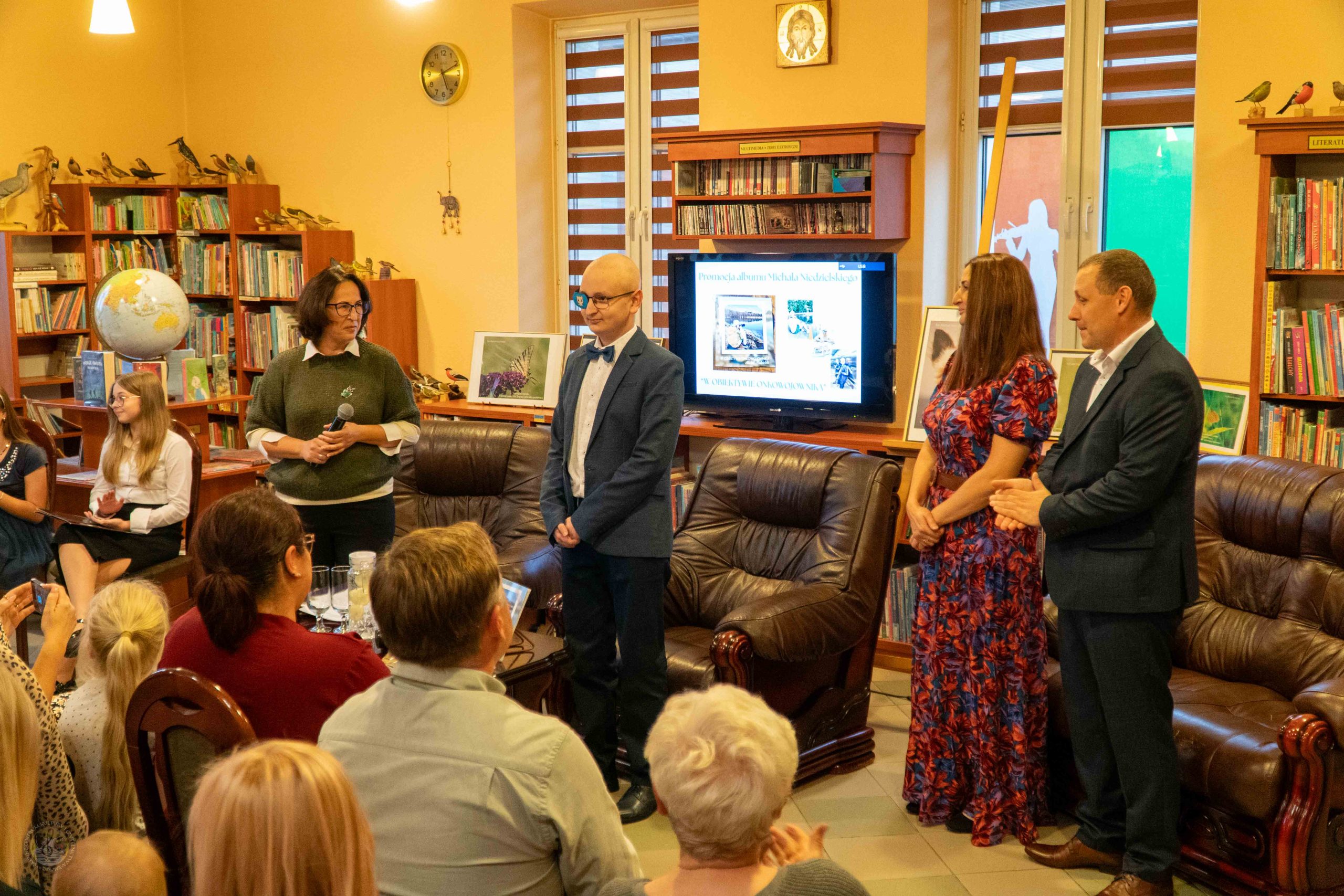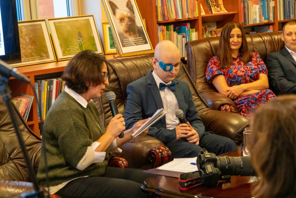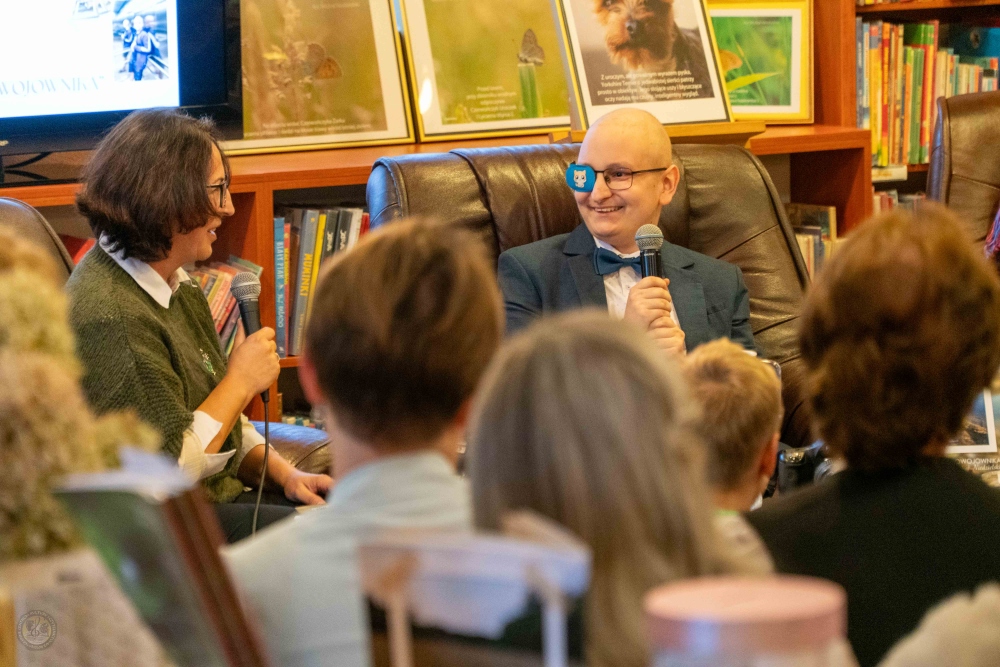 Michał z radością i humorem opowiadał o fotografii, najciekawszych zdjęciach, trudnościach przy fotografowaniu ruchliwych obiektów. Mówił o sile i energii jaką czerpie z obcowania z naturą oraz jak pomaga mu ona w walce z ciężką chorobą, którą toczy. Spotkanie uświetniła oprawa muzyczna, przygotowała ją młodzież Szkoły Podstawowej w Woli Radłowskiej, do której uczęszcza Michał.