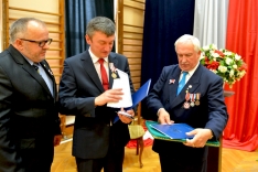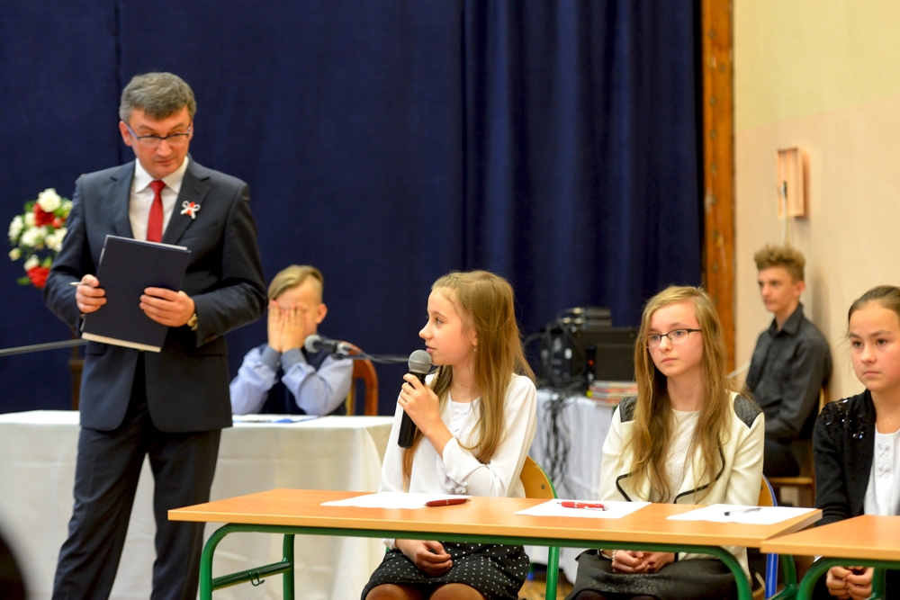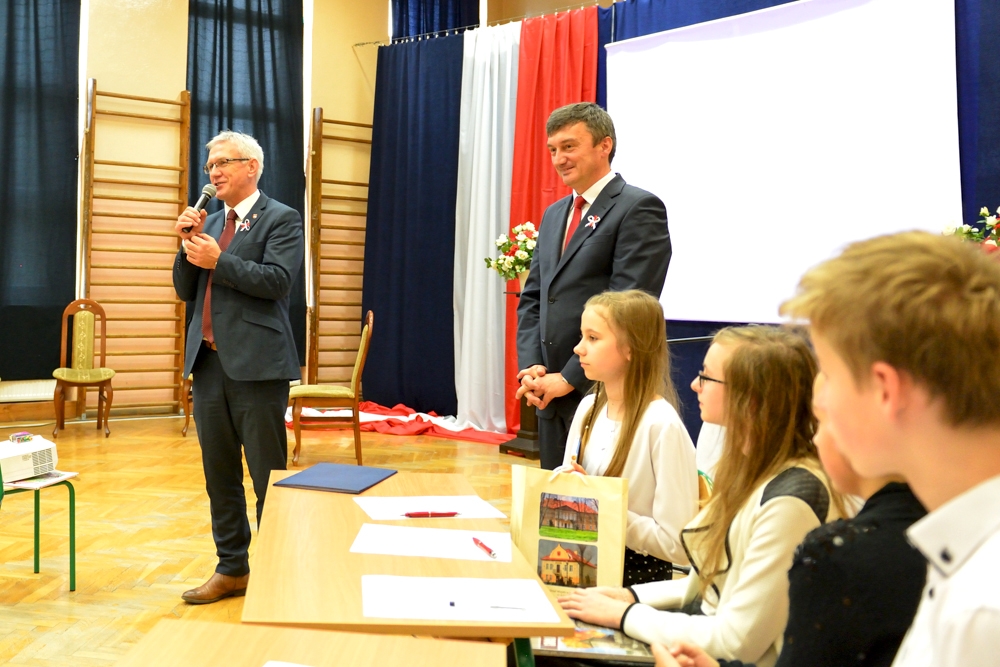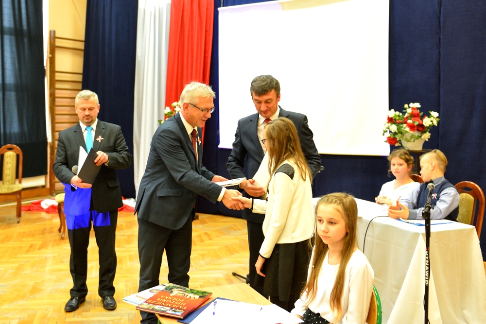 Kulminacją uroczystości było odznaczenie dyrektora ZS Marka Urbanka Złotym Medalem „XXXV-lecia Związku Żołnierzy Wojska Polskiego”. Burmistrz Z. Mączka gratulował uczniom wiedzy historycznej, a następnie wszystkich zaprosił na gminne uroczystości patriotyczne, które odbędą się 11 listopada w Radłowie.