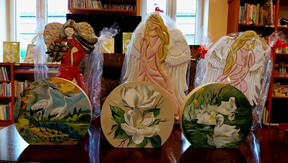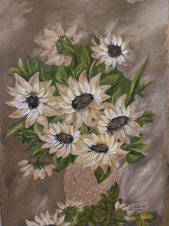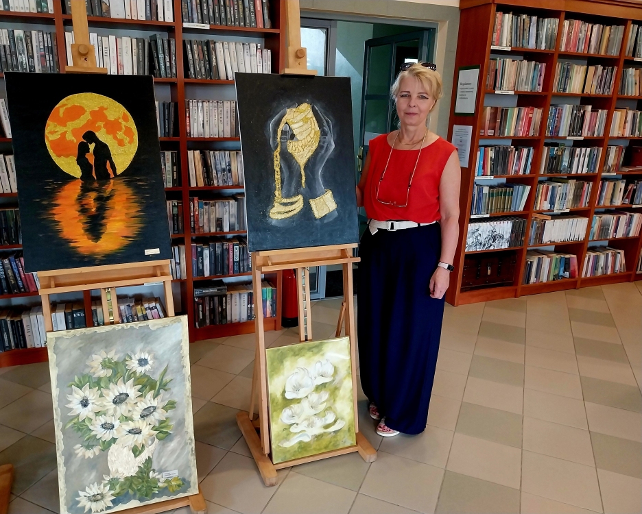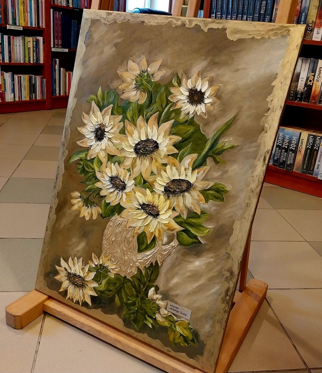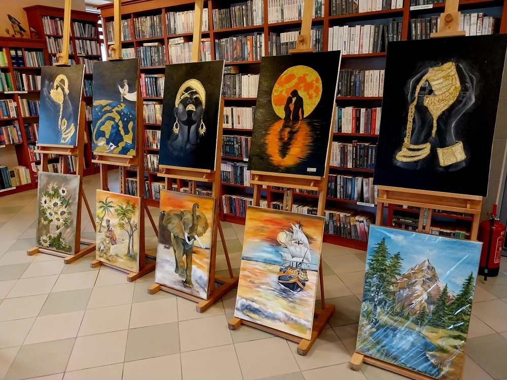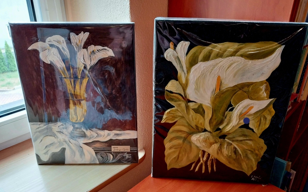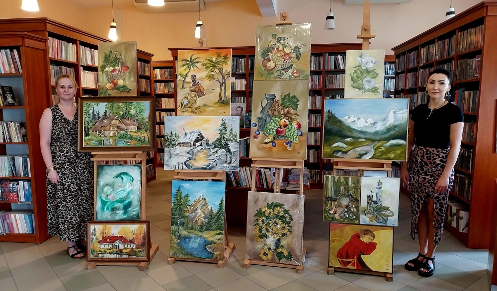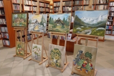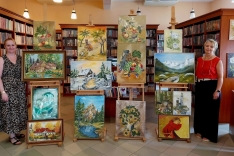 Na wystawę obrazów w radłowskiej bibliotece składają się prace przedstawiające m. in. pejzaże, kwiaty, motywy religijne, ptaki wykonane techniką olejną. Część prac powstała również przy pomocy szpachelki malarskiej. Oprócz obrazów prezentowane są anioły wykonane ze styroduru.