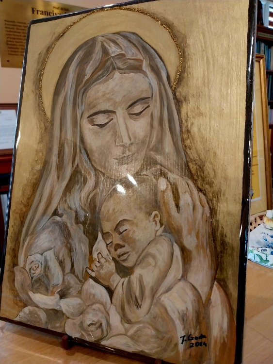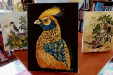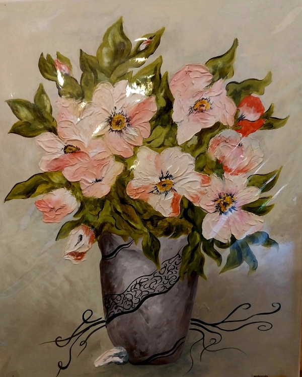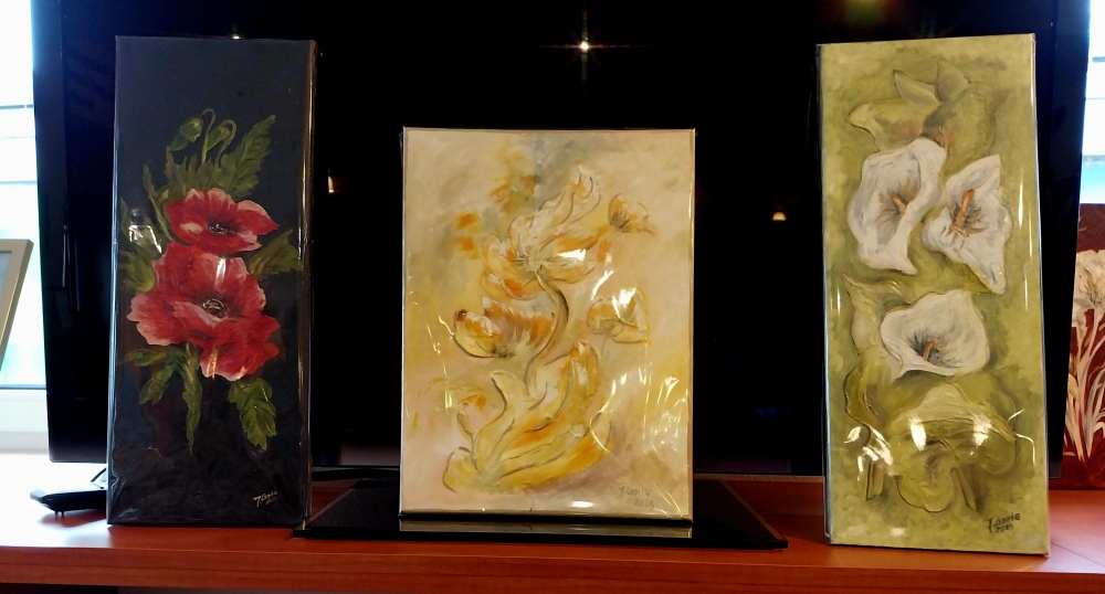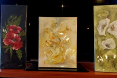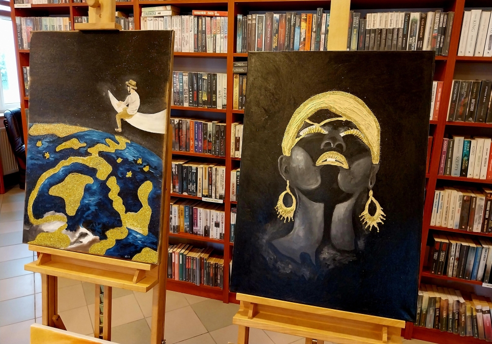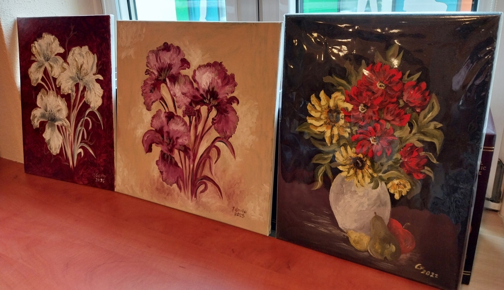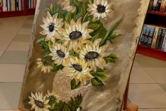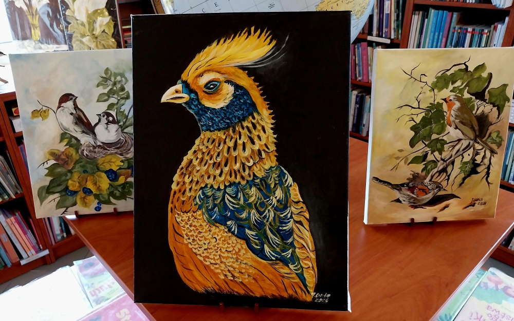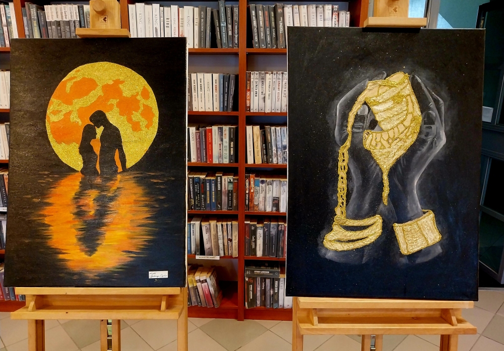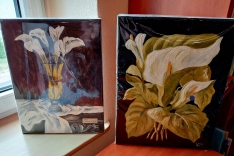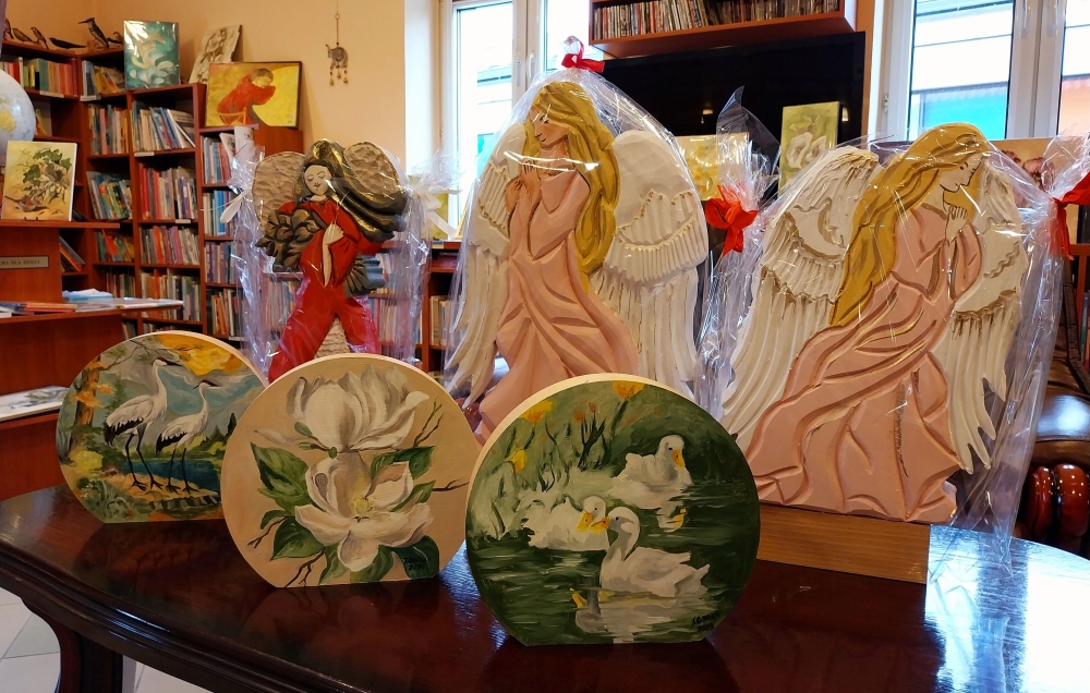 Na wystawę obrazów w radłowskiej bibliotece składają się prace przedstawiające m. in. pejzaże, kwiaty, motywy religijne, ptaki wykonane techniką olejną. Część prac powstała również przy pomocy szpachelki malarskiej. Oprócz obrazów prezentowane są anioły wykonane ze styroduru.