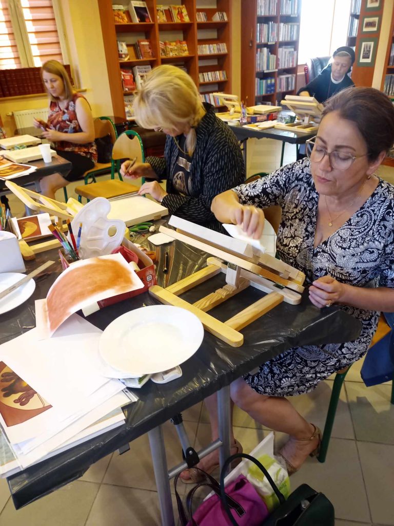 „Piękno i Boska Tajemnica”- tak można by zatytułować rozpoczęte wczoraj 21 września warsztaty ikonopisania. Pani Marta Odbierzychleb- utalentowana, wielokrotnie nagradzana malarka cierpliwie wprowadzała uczestników w arkana sztuki ikonopisania. A sami uczestnicy twórczo i z ogromnym zaangażowaniem zagłębiali się w kolejne stopnie „pisania” ikony.