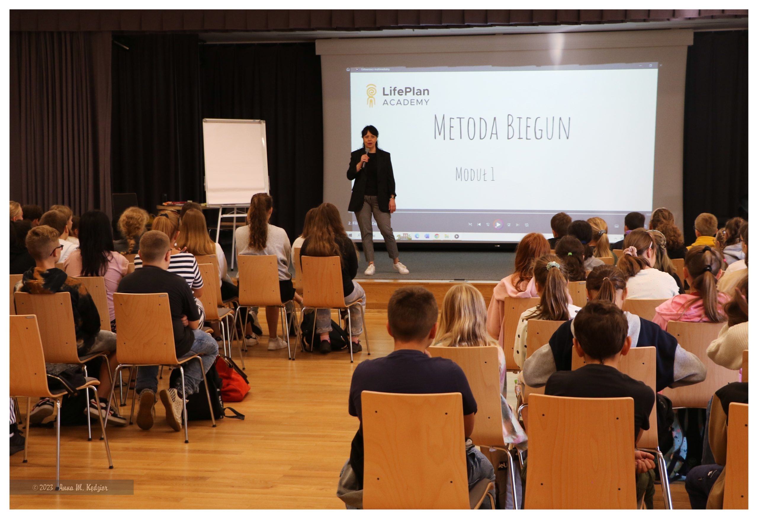 Dobiegły końca prowadzone w ciągu dwóch dni warsztaty motywacyjne dla młodzieży z Fundacją Marka Kamińskiego. Certyfikowana trenerka pani Joanna Kal-Walkowiak na bazie Metody Biegun pokazała młodym ludziom jak budować swoją moc, w jaki sposób określać cele, realizować je, odkrywać swoje mocne strony i dostrzegać słabe, jak skutecznie zaprojektować siebie. W ciągu 2,5 godziny przedstawiła praktyczne narzędzia do realizowania indywidualnych celów i ambicji, do wzmocnienia odporności psychicznej, a także wyjaśniła jak „odnosić porażki i ponosić sukcesy”, ponieważ nie ma sukcesu bez porażki. Metoda biegun oparta jest na 5 podstawowych krokach: