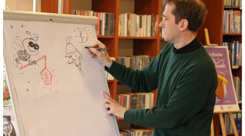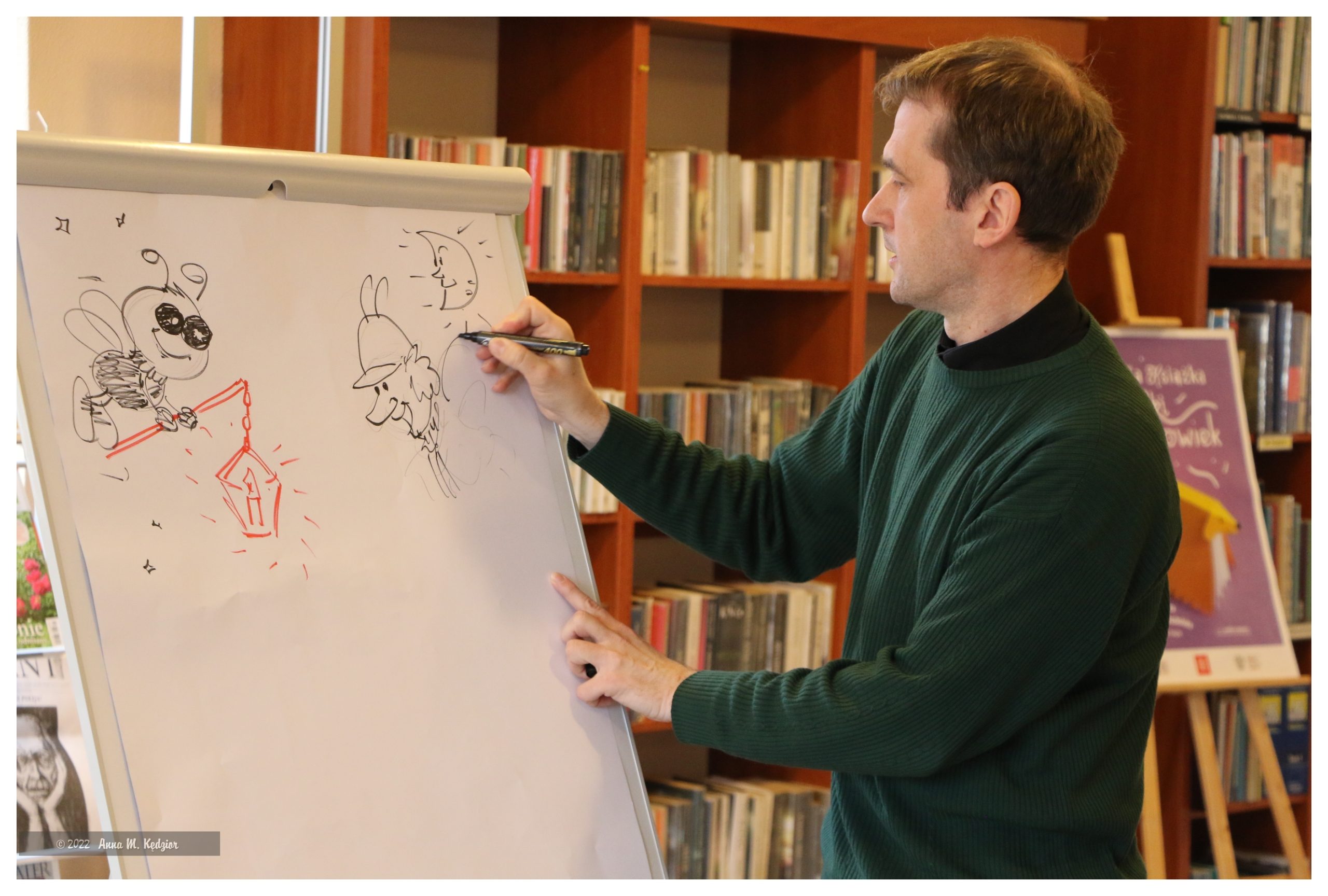 Dzieci były zachwycone i zafascynowane tym, co powstawało na kartkach papieru, aktywnie uczestniczyły w warsztatach, a gdy te dobiegały końca ze smutkiem opuszczały bibliotekę. Na koniec ilustrator wykonał dla każdego uczestnika rysunek z dedykacją i autografem.