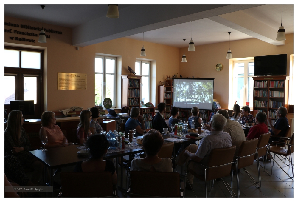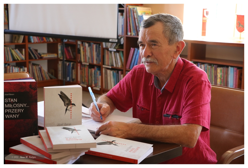 Te słowa w pełni oddają atmosferę wczorajszego spotkania w radłowskiej bibliotece. Cichy, ciepły, letni wieczór i Pan Poeta Józef Baran opowiadający o swojej poezji, o ogromnym dorobku twórczym wielu lat, o życiu, podróżach, pasjach i przemijaniu. Nasz gość prezentował tomik poezji o wymownym tytule „W wieku odlotowym”, na który składają się utwory z lat 2015-2020. Czytelnik znajdzie w nim zarówno piękne impresje borzęcińskie związane z przyrodą, jak i przejmujące refleksje szpitalne o cierpieniu.