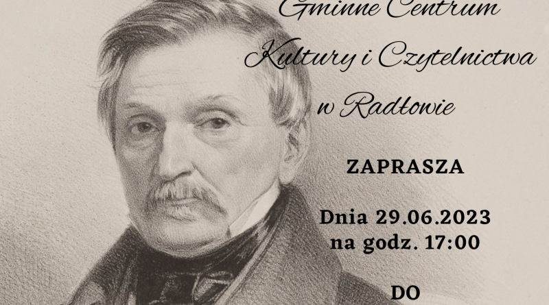 Miejsko-Gminna Biblioteka Publiczna im. prof. Franciszka Ziejki w Radłowie zaprasza na wykład Pani Elżbiety Wiśniewskiej- Woźniczki dotyczący biografii i twórczości Aleksandra Fredry w 230 rocznicę urodzin słynnego komediopisarza i poety.Szczegółowe informacje na plakacie.