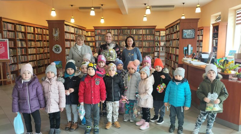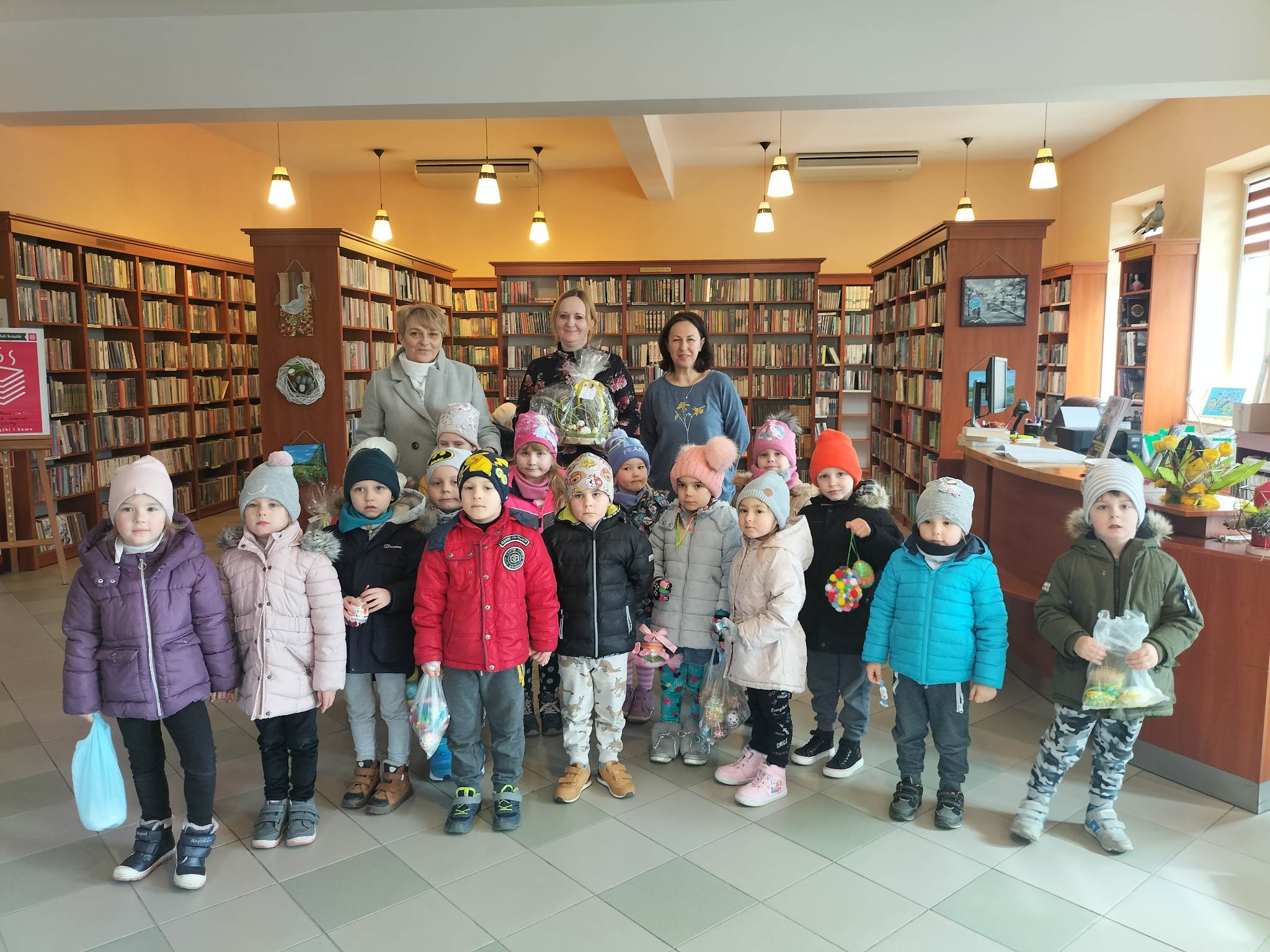 Dzieci wraz z wychowawczyniami z Publicznego Przedszkola w Radłowie odwiedziły Miejsko-Gminną Bibliotekę Publiczną im. prof. Franciszka Ziejki w Radłowie, by złożyć pracownikom wielkanocne życzenia.